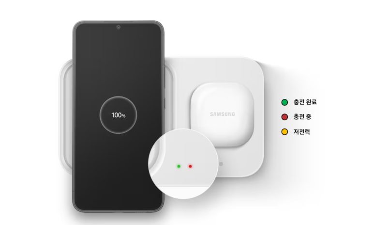 (LED로 빨간색, 노란색 그리고 초록색으로 충전 상태를 알려줍니다. LED 조명의 경우 갤럭시 S10, 노트10 이후 모델에서만 적용됩니다. )