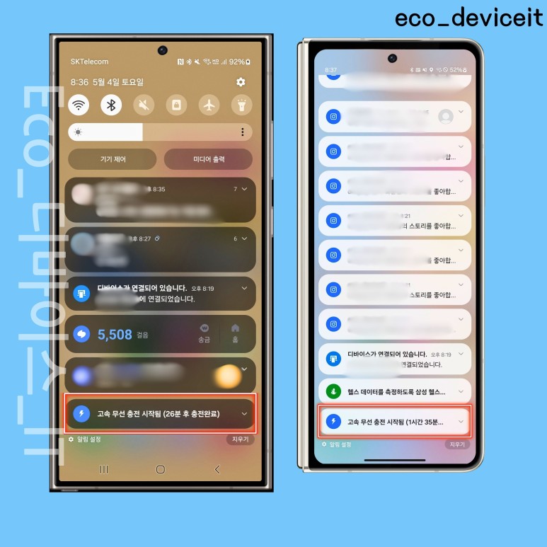 제가 갤럭시 워치6 클래식과 갤럭시 Z 폴드5를 올렸을 때 똑같이 고속으로 충전이 아주 잘 됩니다.