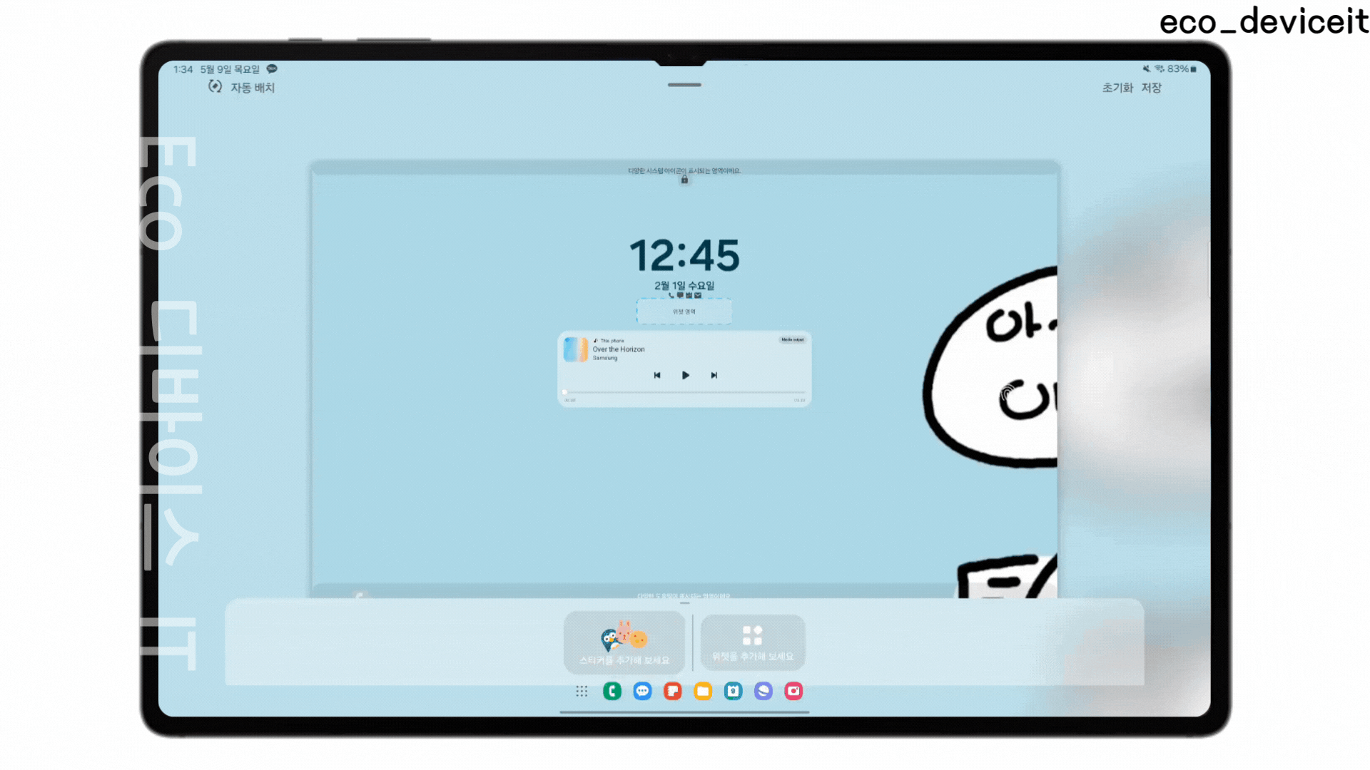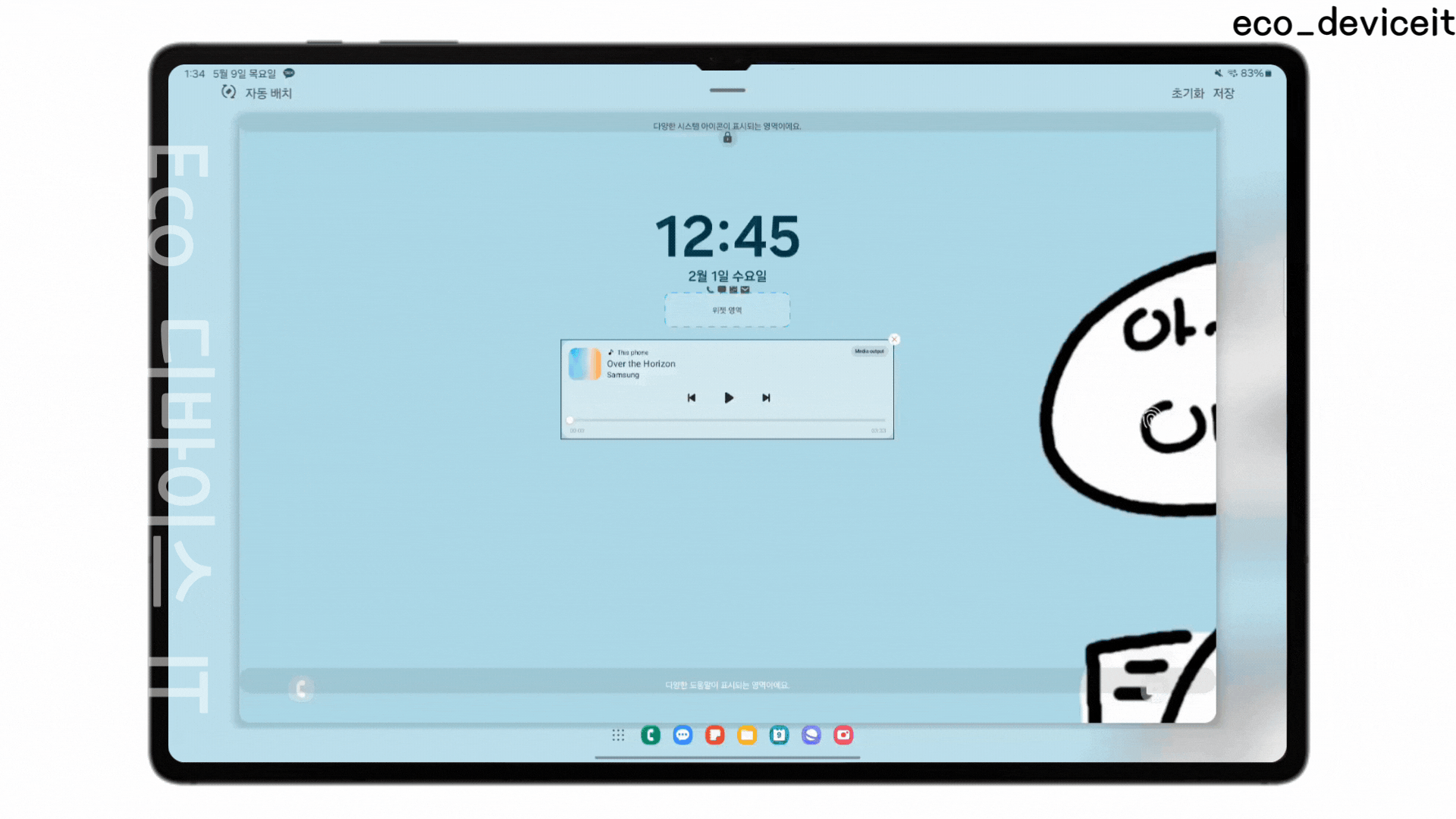 기본적으로 제한적이던 시계와 음악 위젯의 위치를 자유롭게 이동하며 설정할 수 있습니다. 시계 스타일도 Clock Face (클락 페이스)를 통하여 쉽게 변경할 수 있어요!