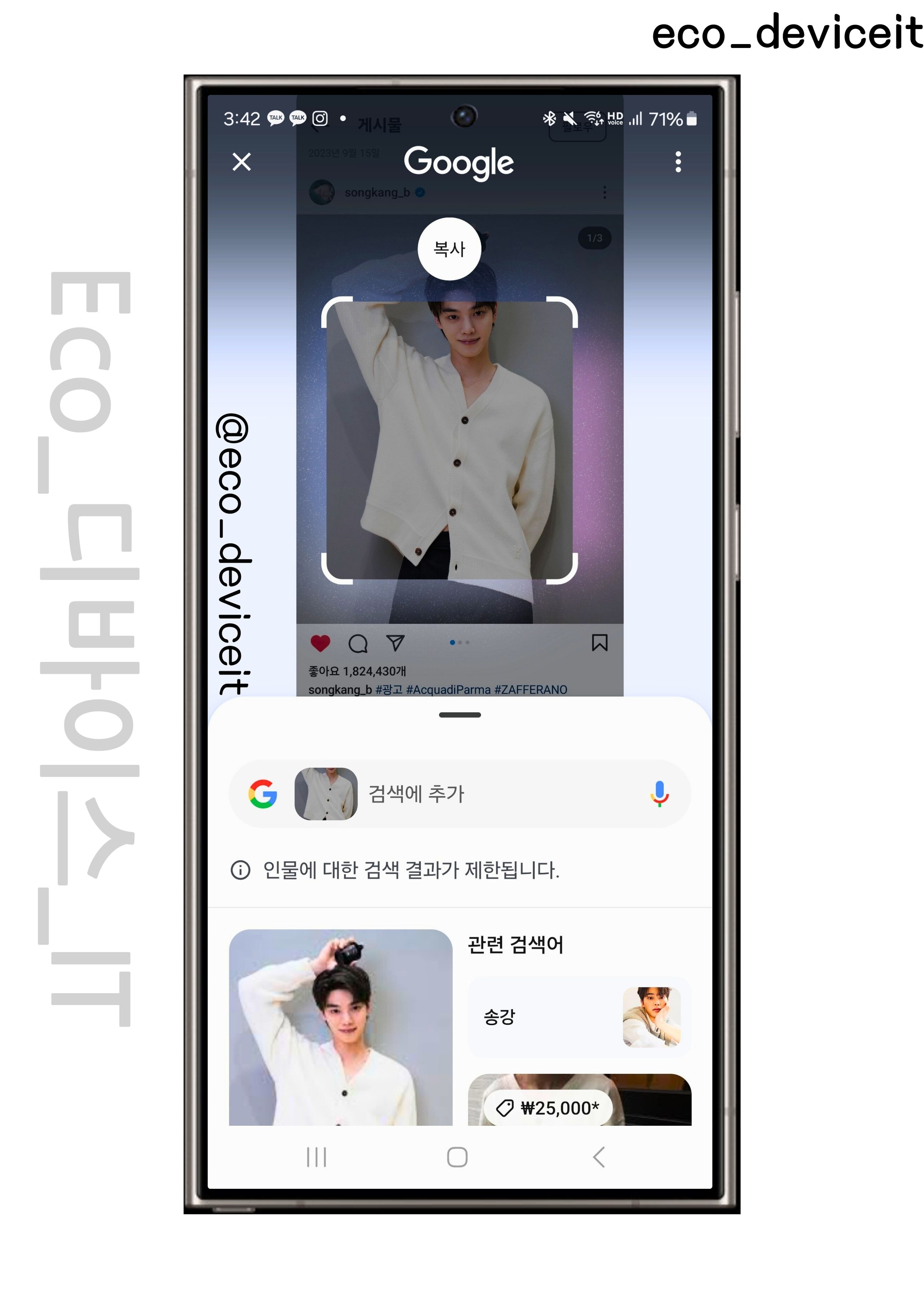 서클 투 서치는 새롭게 추가된 Google검색 기능으로, 검색을 원하는 화면 위에 S Pen이나 손가락으로 간단한 제스처를 그려 해당 이미지, 동영상, 문자 등의 상세 정보를 손쉽게 검색할 수 있습니다.