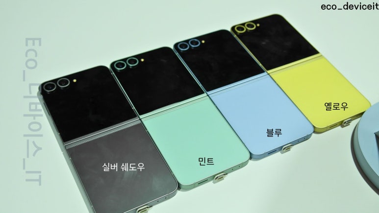 이번 플립6는 젊은 세대들이 선호하는 컬러로 캐주얼하고 세련된 색상으로 디자인은 진짜 예쁘더라고요. 진짜 실물깡패!