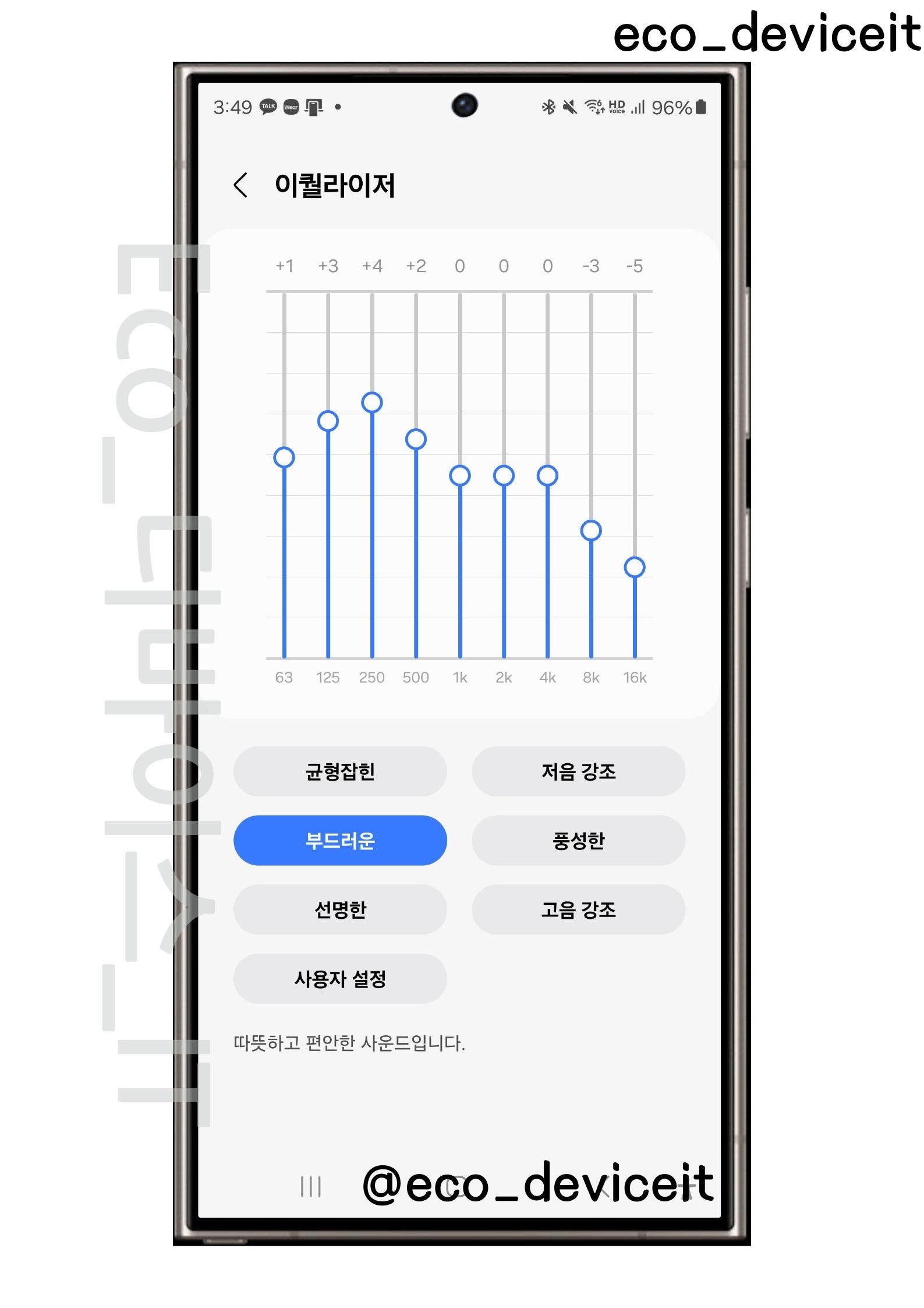 이제 갤럭시 버즈3 프로에서 이퀄라이저를 직접 세분화하여 커스텀 할 수 있습니다. 드디어 갤럭시 버즈로 간단한 AI 음성 데이터 관련 프로젝트를 진행 할 땐 이걸로 사용할 수 있을거 같습니다.