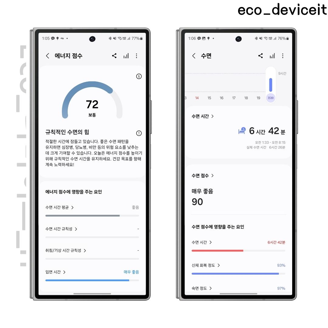 운동 트래킹도 잘되고 수면 측정에서도 코골이와 수면중 산소포화도도 지원하기 때문에 수면 측정만큼은 정말 만족했어요.