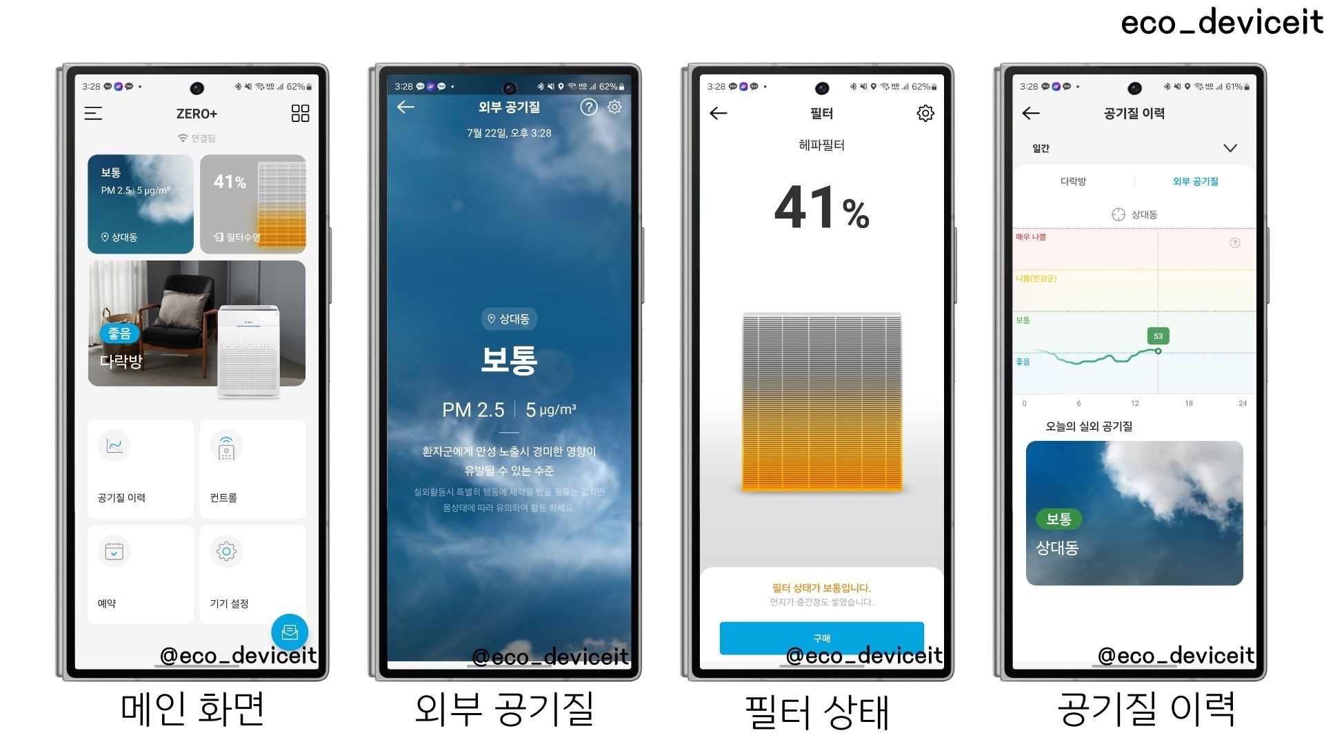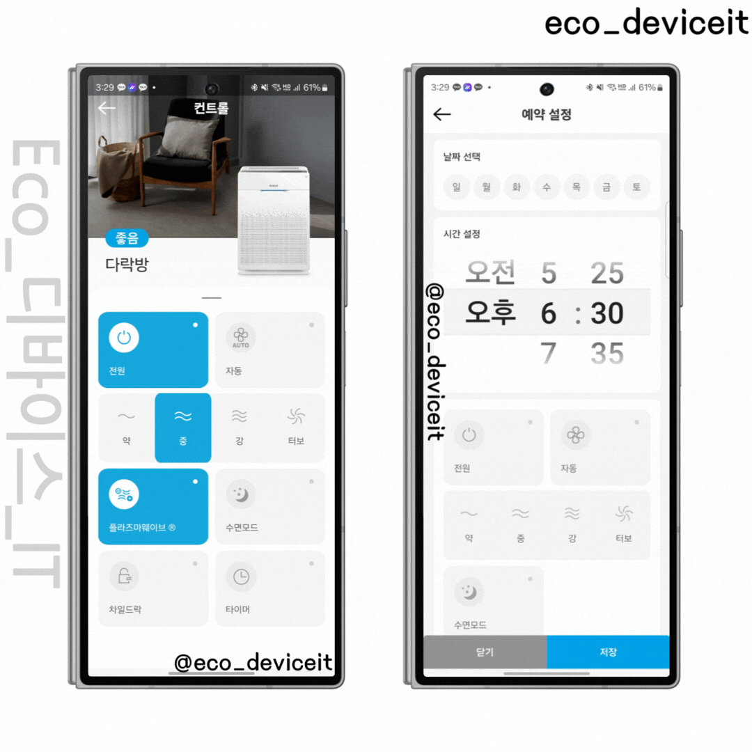 이런식으로 내가 멀리 있더라도 휴대폰만 있으면 쉽게 컨트롤 할 수 있고, 예약 기능도 있어 편하게 세팅하실 수 있습니다.