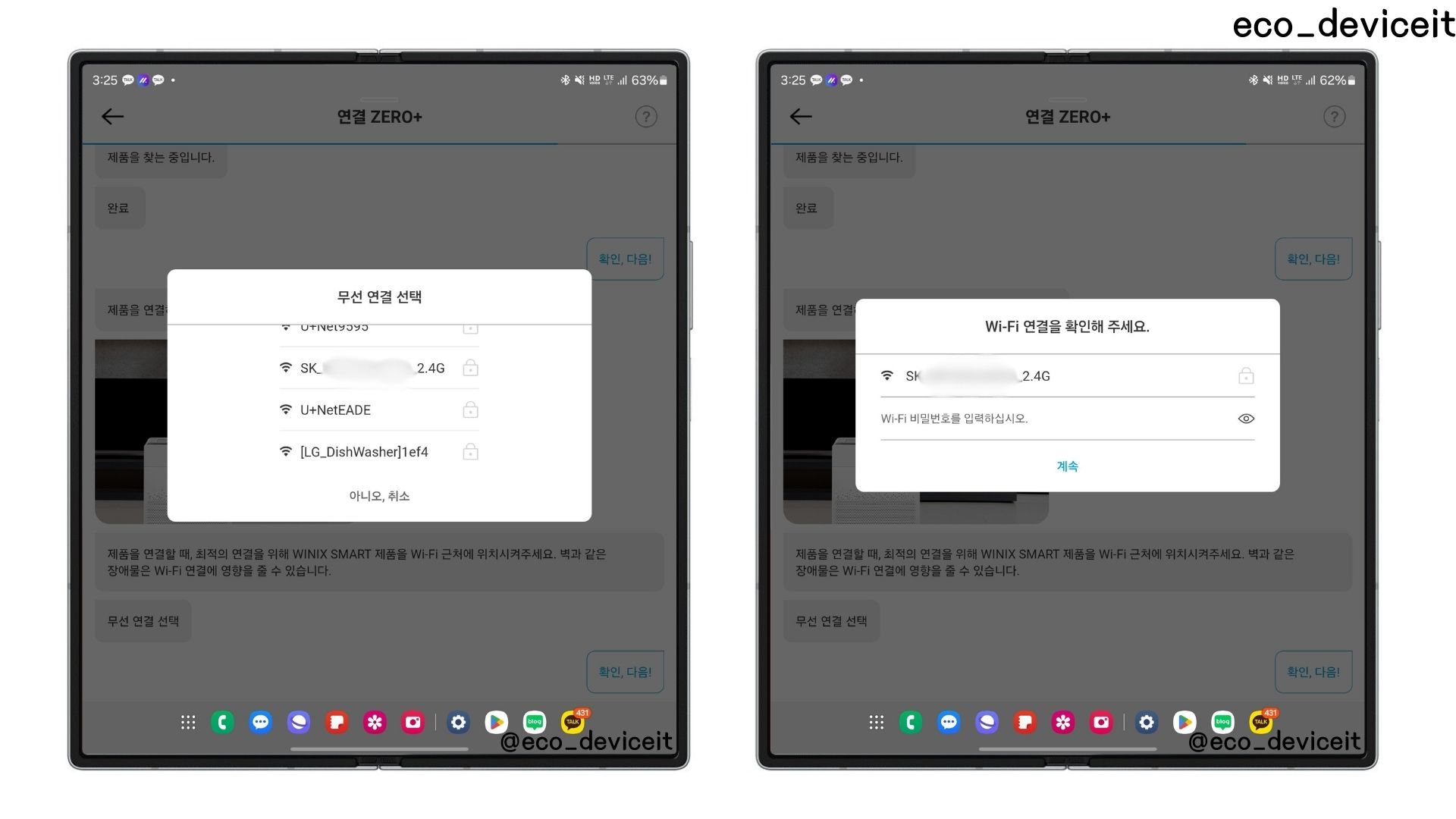 이제 와이파이 연결을 해야하는데.. 위닉스 기기의 경우, 최대 2.4Ghz의 주파수를 지원하여 5Ghz의 공유기 연결은 지원하지 않음을 알려드립니다.