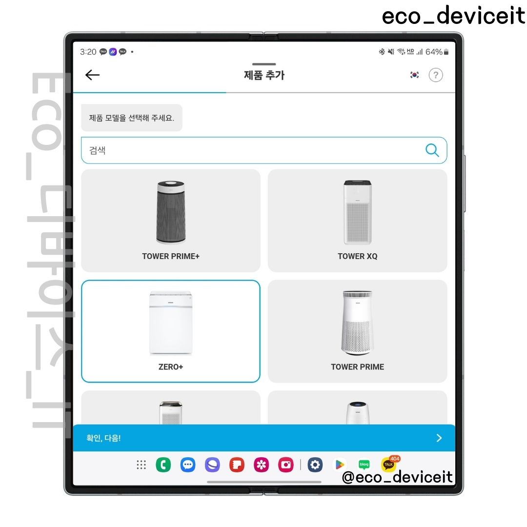 저는 공기청정기 중에서도 2020년에 출시한 Zero+ 모델을 선택후 하단에 파란색으로 확인 버튼을 눌러줄께요.
