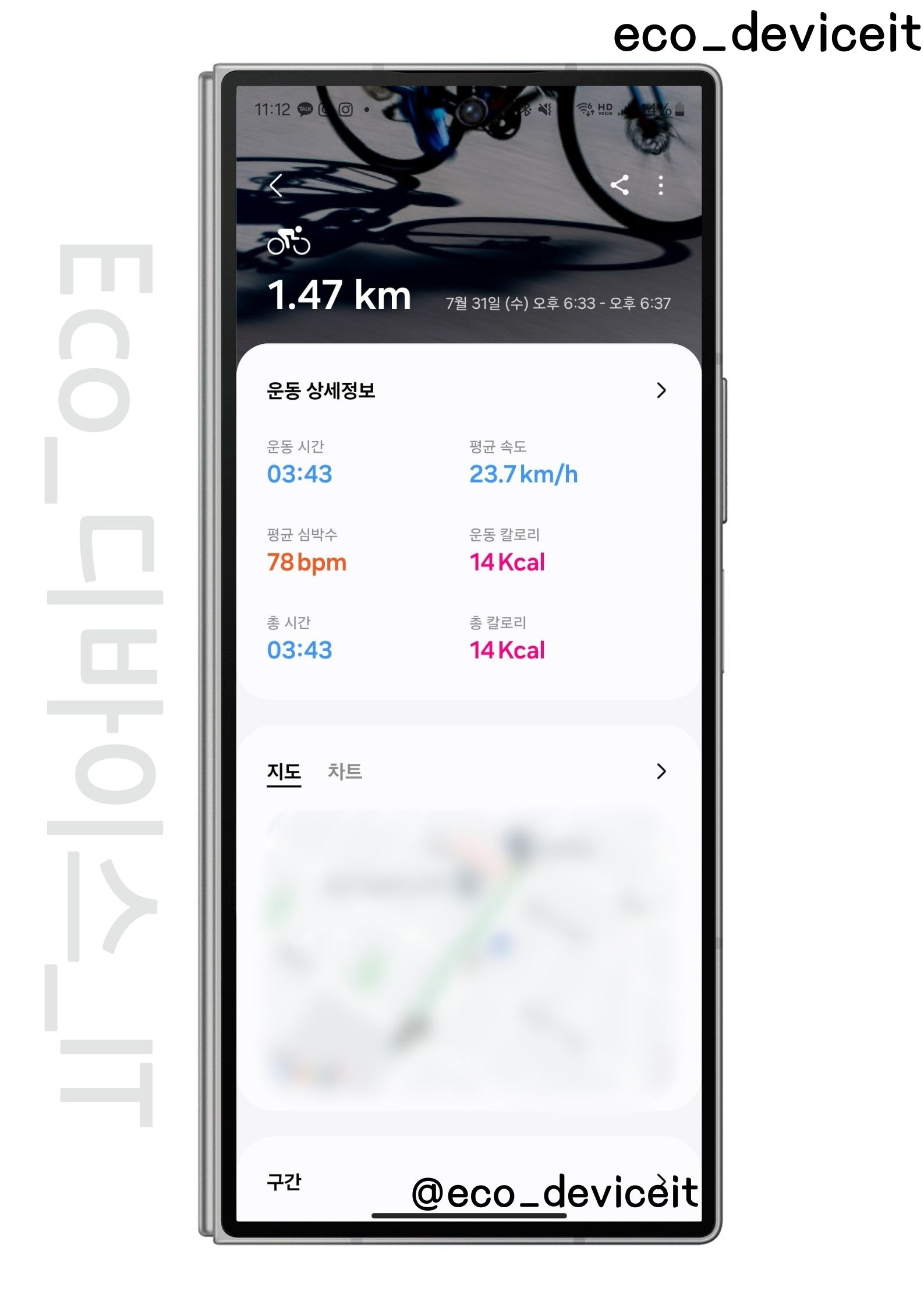 그러나 아직까지 몇몇 오류가 있었습니다. 버스로 이동할 때 워치는 자동으로 자전거 타기로 인식하여 측정하는 이슈도 있었고.. 제가 운동을하며 음악을 듣는데.. 발열이 심해 워치가 버벅이면서 기기가 일시적으로 멈추는 현상이 있었습니다.