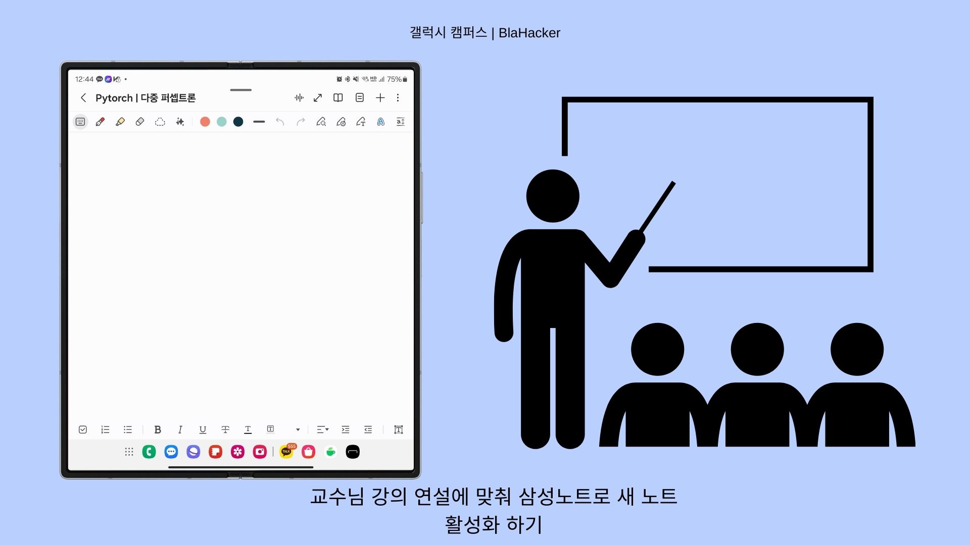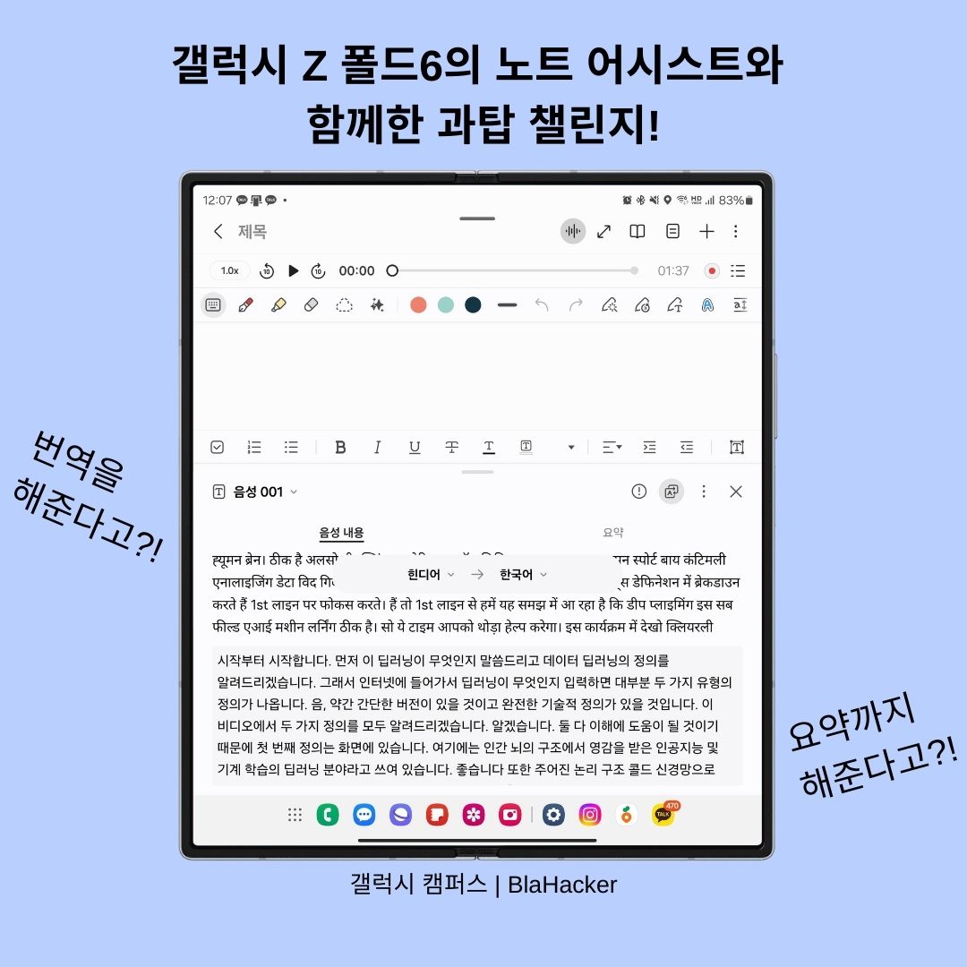 저는 전공 과목 교육을 듣거나 수업시간에는 삼성 노트와 함께 수업에 임하고 있습니다. 이번 컨텐츠는 갤럭시 Z 폴드6와 함께 노트 어시트를 활용한 과탑 챌린지 꿀팁을 알려드리도록 하겠습니다.