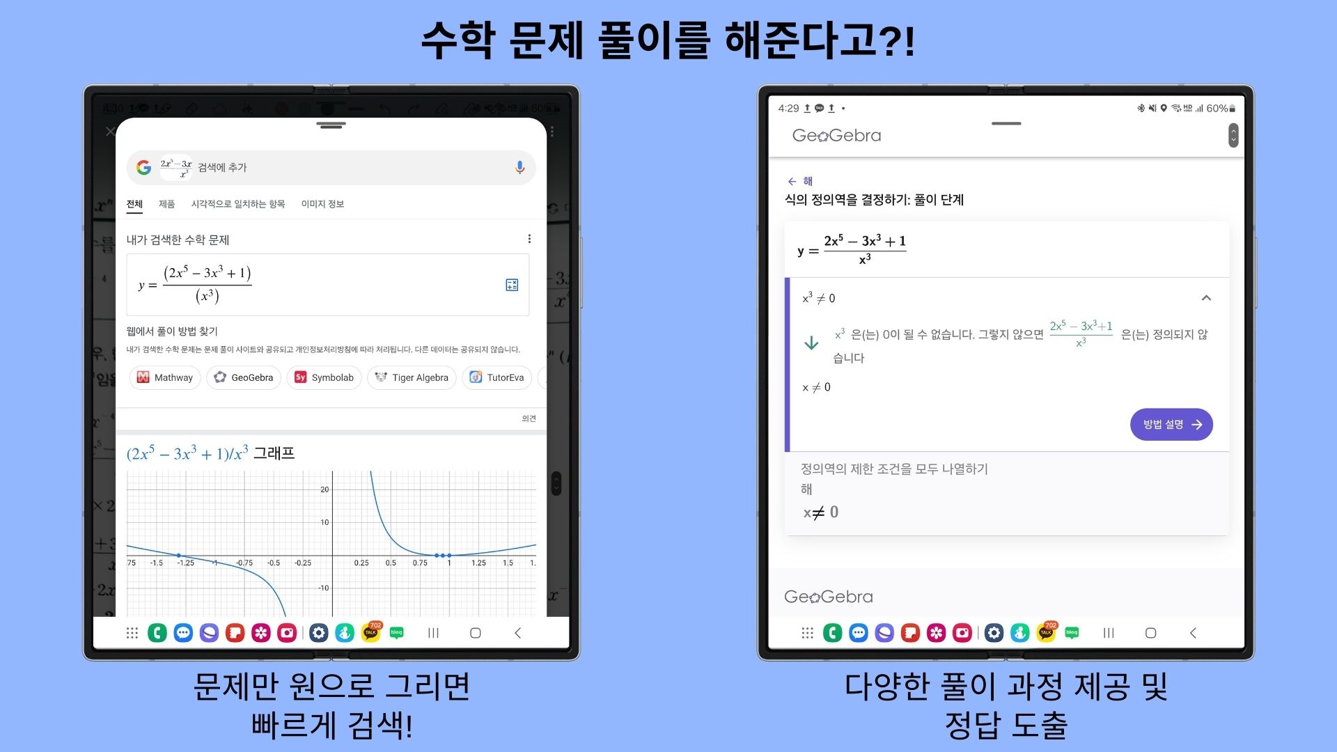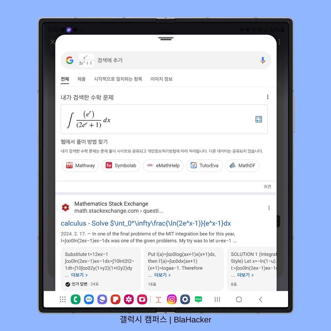 저는 인공지능 관련하여 미적분 공식이 나올 때가 있는데 복잡한 문제도 서클 투 서치를 통하여 풀이 과정까지 세세하게 제공해주다보니 갤럭시가 학업에도 최적화된 경험을 제공해주어 아주 좋았습니다.
