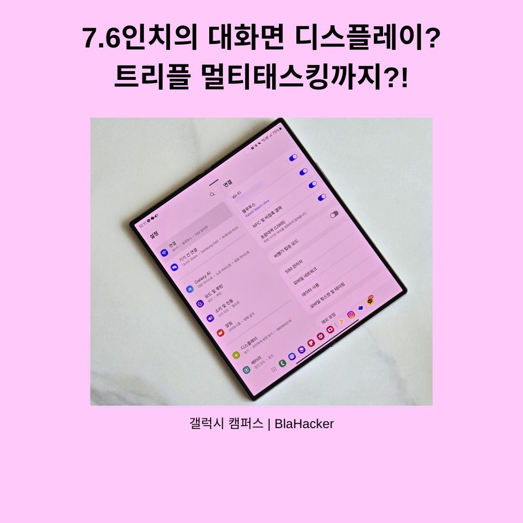 그래서 오늘은 갤럭시 Z 폴드6의 대화면을 활용한 멀티태스킹 경험에 대하여 알려드리도록 하겠습니다.