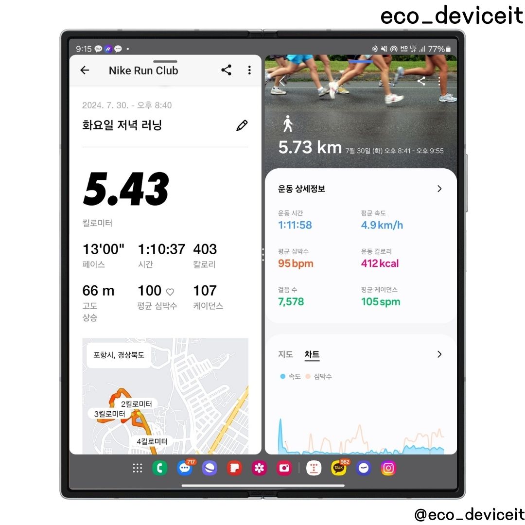 정확도가 오히려 네이티브인 삼성헬스보단 서드파티앱인 나이키 Run Club 앱이 더 높았다랄까요.. 삼성헬스는 조금 더 운동 측정 성능에 집중이 필요해보였습니다.