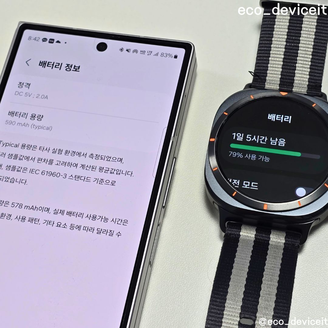 제가 갤럭시 워치 울트라를 사용하면서 놀란점은 배터리가 엄청 크게 개선되었습니다. 제가 갤럭시 워치6 클래식 47mm 모델을 사용했을 때도