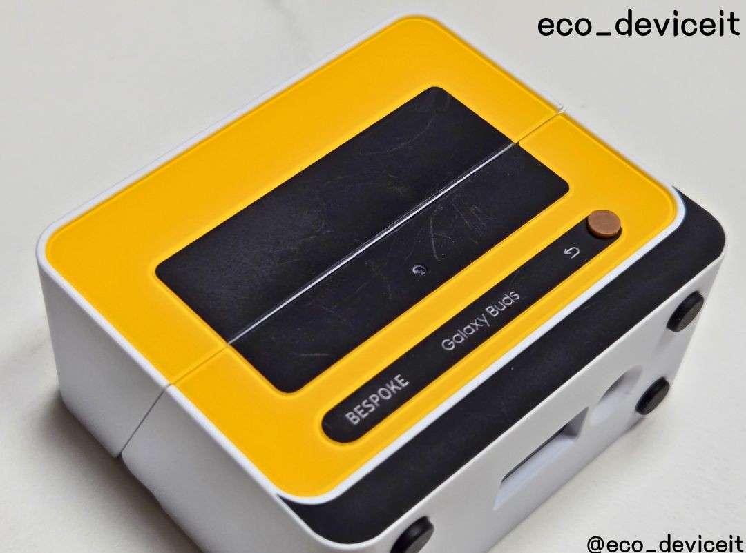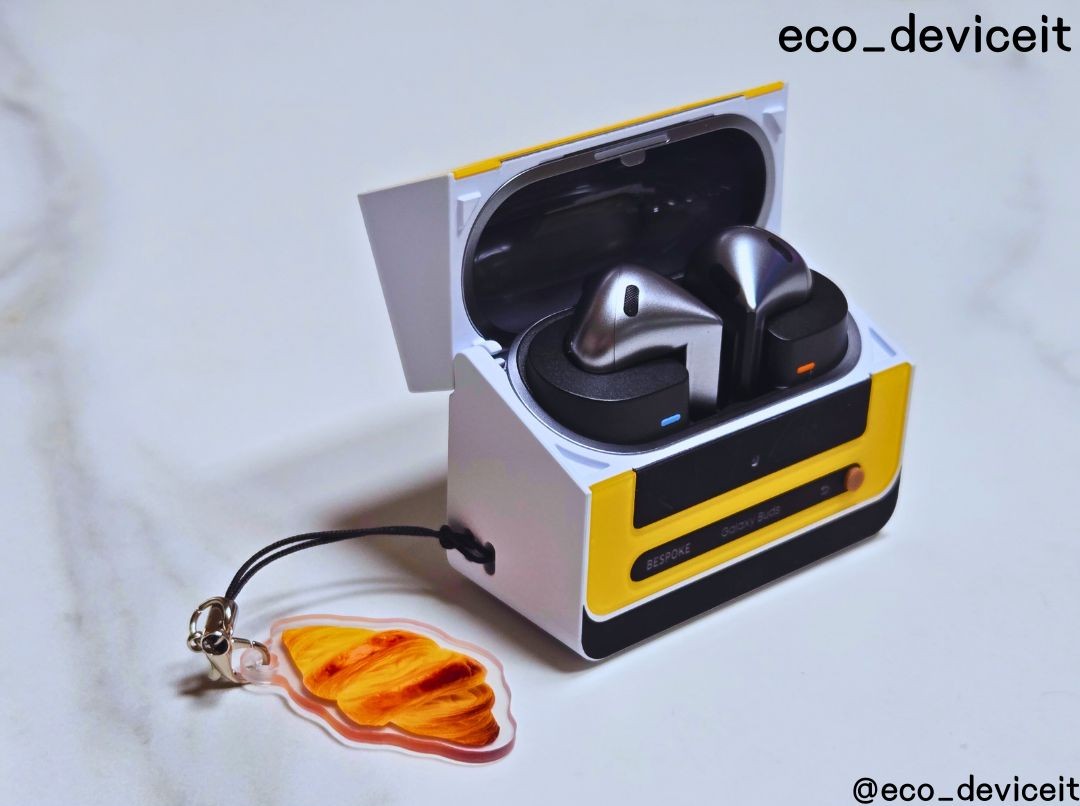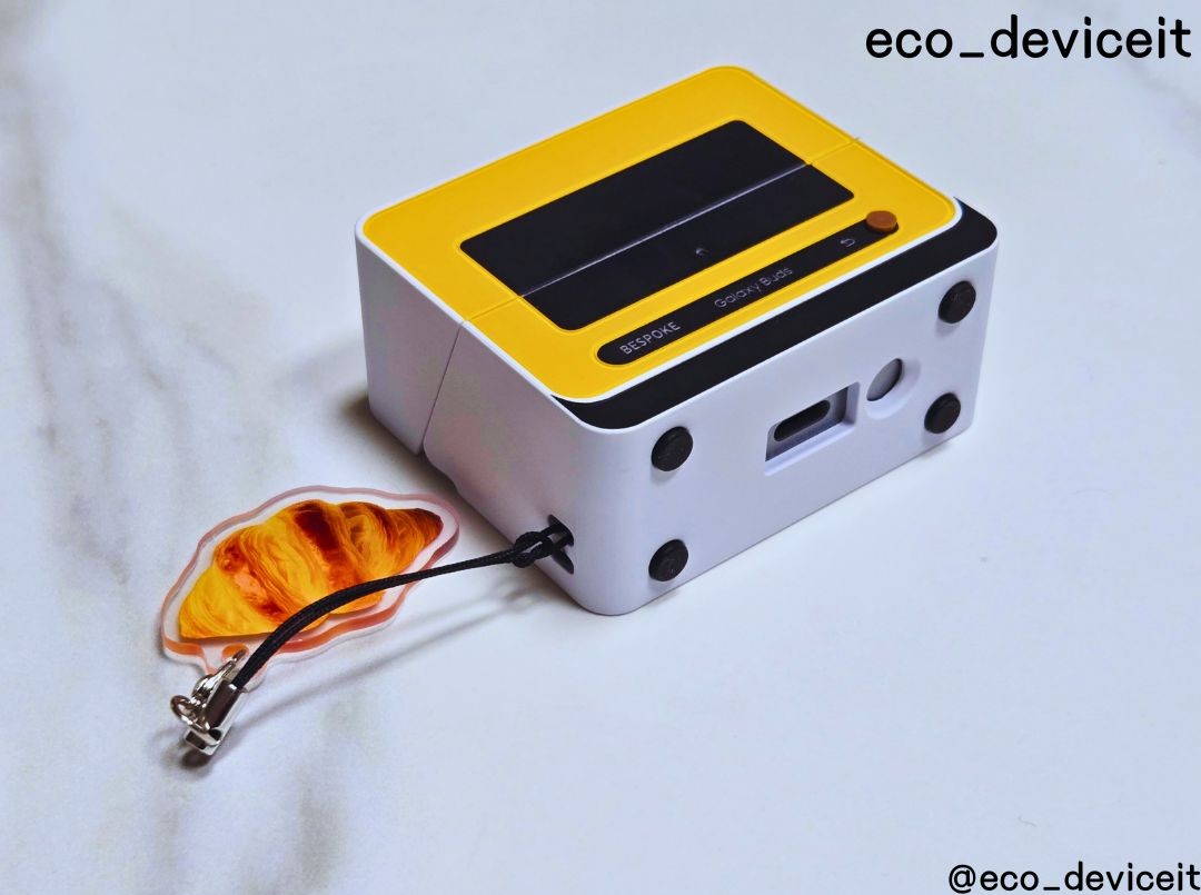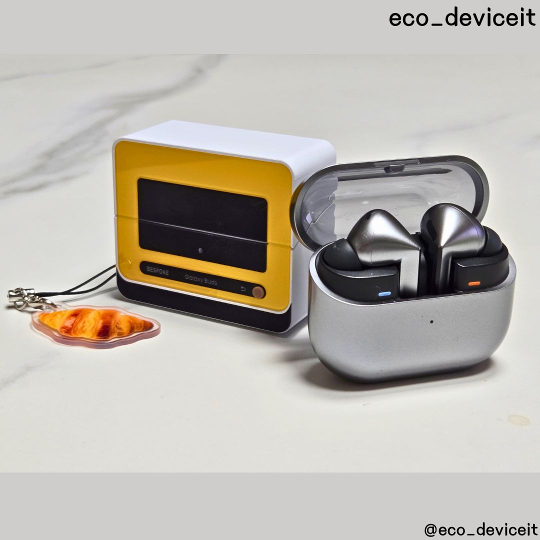 갤럭시 버즈3에 비스포크 큐커 멀티 케이스를 착용해봤습니다. 제 버즈3가 실버 색상이라 조합이 별로일 줄 알았는데.. 시크한 실버 색상과 옐로우 색상의 조합도 환상의 콤비네요!