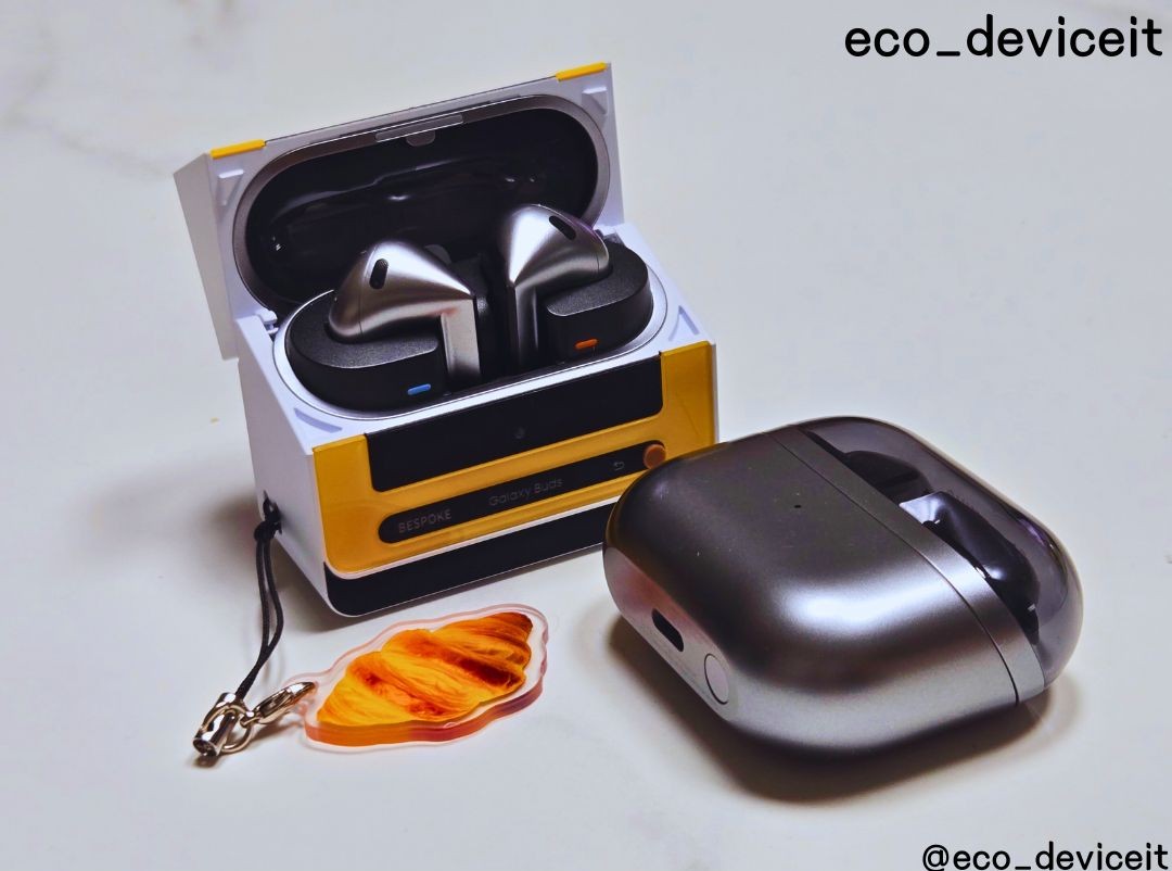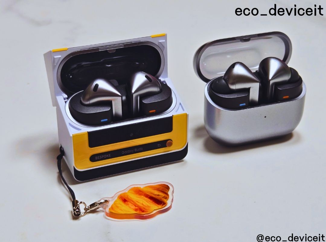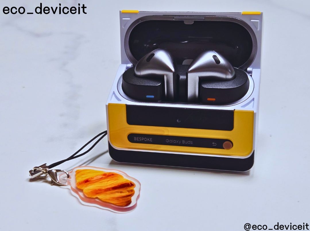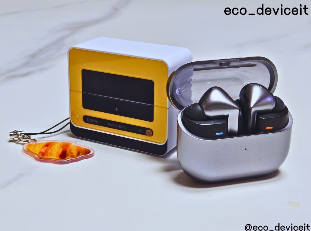 갤럭시 버즈3에 비스포크 큐커 멀티 케이스를 착용해봤습니다. 제 버즈3가 실버 색상이라 조합이 별로일 줄 알았는데.. 시크한 실버 색상과 옐로우 색상의 조합도 환상의 콤비네요!