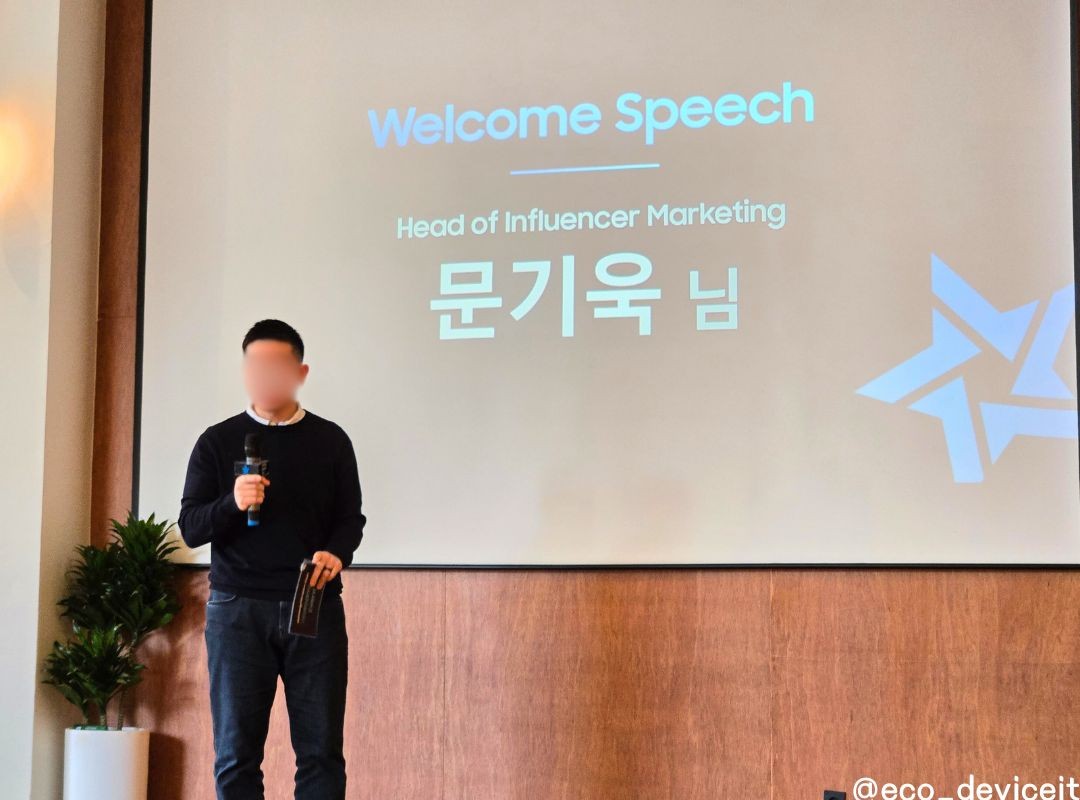 처음에는 삼성전자 MX사업부 인플루언서 글로벌 마케팅의 총괄하시는 문기욱 프로님의 환영 인사로 시작했습니다.