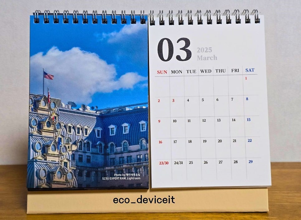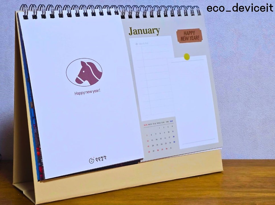 보자마자 가장 마음에 들었던 부분은 캘린더가 탁상형으로 만들어져 양면 앞 뒤로 편하게 스탠드 형태로 볼 수 있다는 것이 장점입니다.