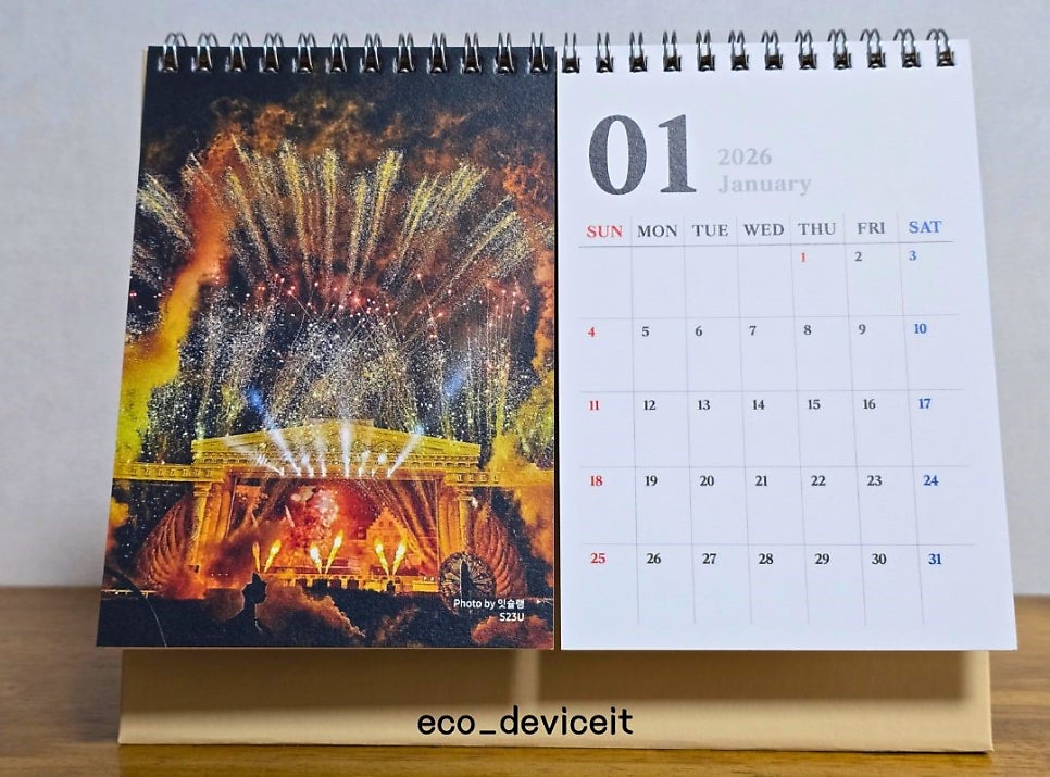 크~ 마지막은 2026년 1월 달력이네요!! 잇슐랭님께서 촬영하신 유명한 에버랜드 불꽃놀이 사진입니다!!