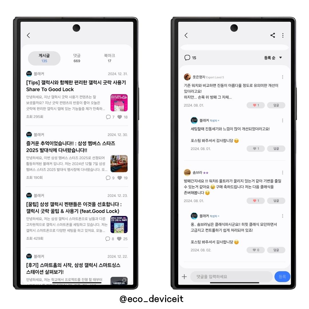 이후, 저는 이전부터 각종 SNS와 삼성 멤버스에 갤럭시 제품 관련한 솔직한 후기와 새로운 기능들 소개하며 많은 분들께서 좋은 반응으로 돌아와 정말 뿌듯함을 느꼈던거 같습니다.
