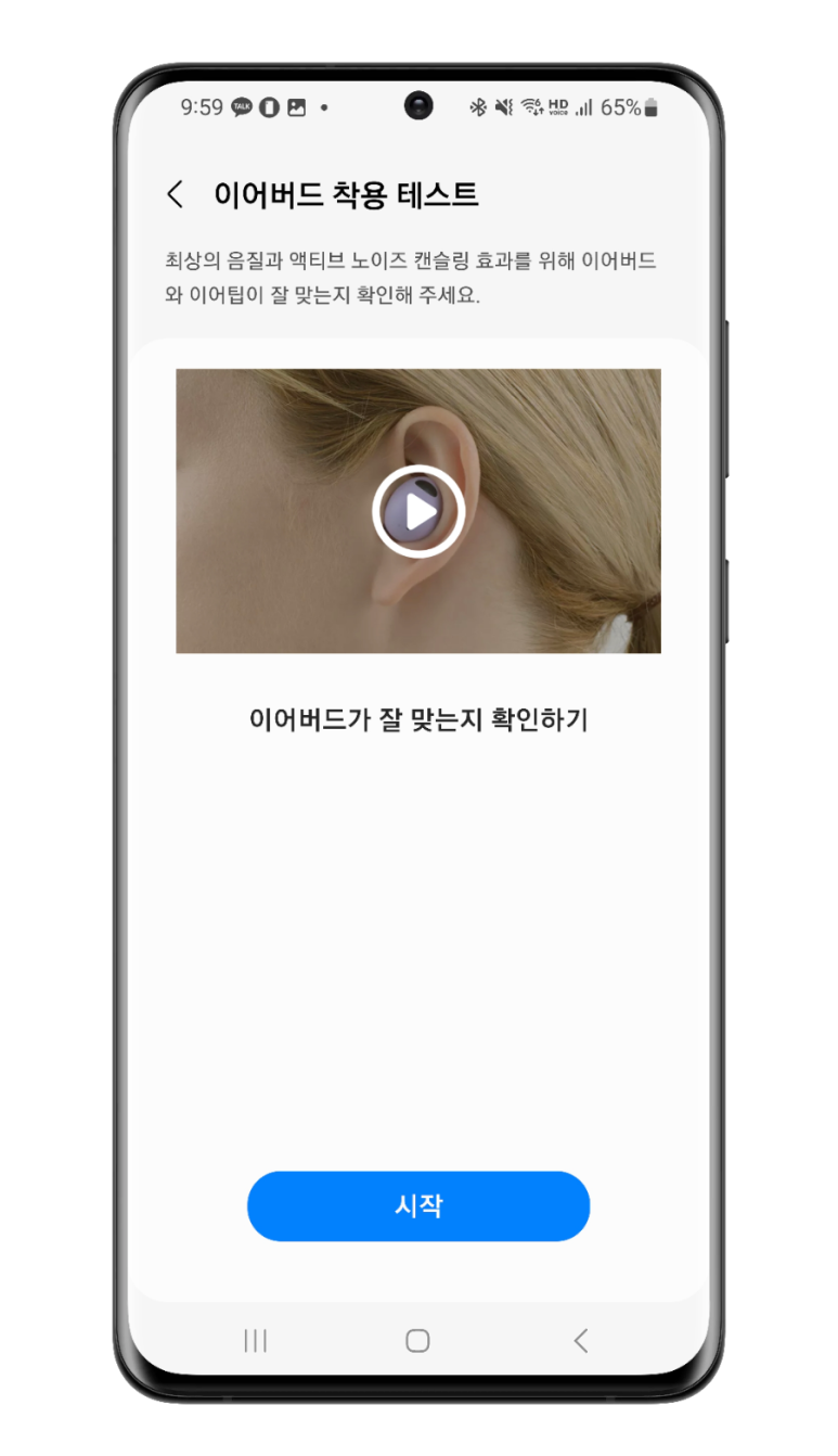 버즈2에만 들어간 착용감지 테스트가 버즈2 프로에도 들어갔습니다. 그래서 내가 이어버드를 잘 착용하고 있는지, 이어팁이 맞는지 이렇게 내 착용 상태를 알 수 있는 기능이 추가되었습니다.