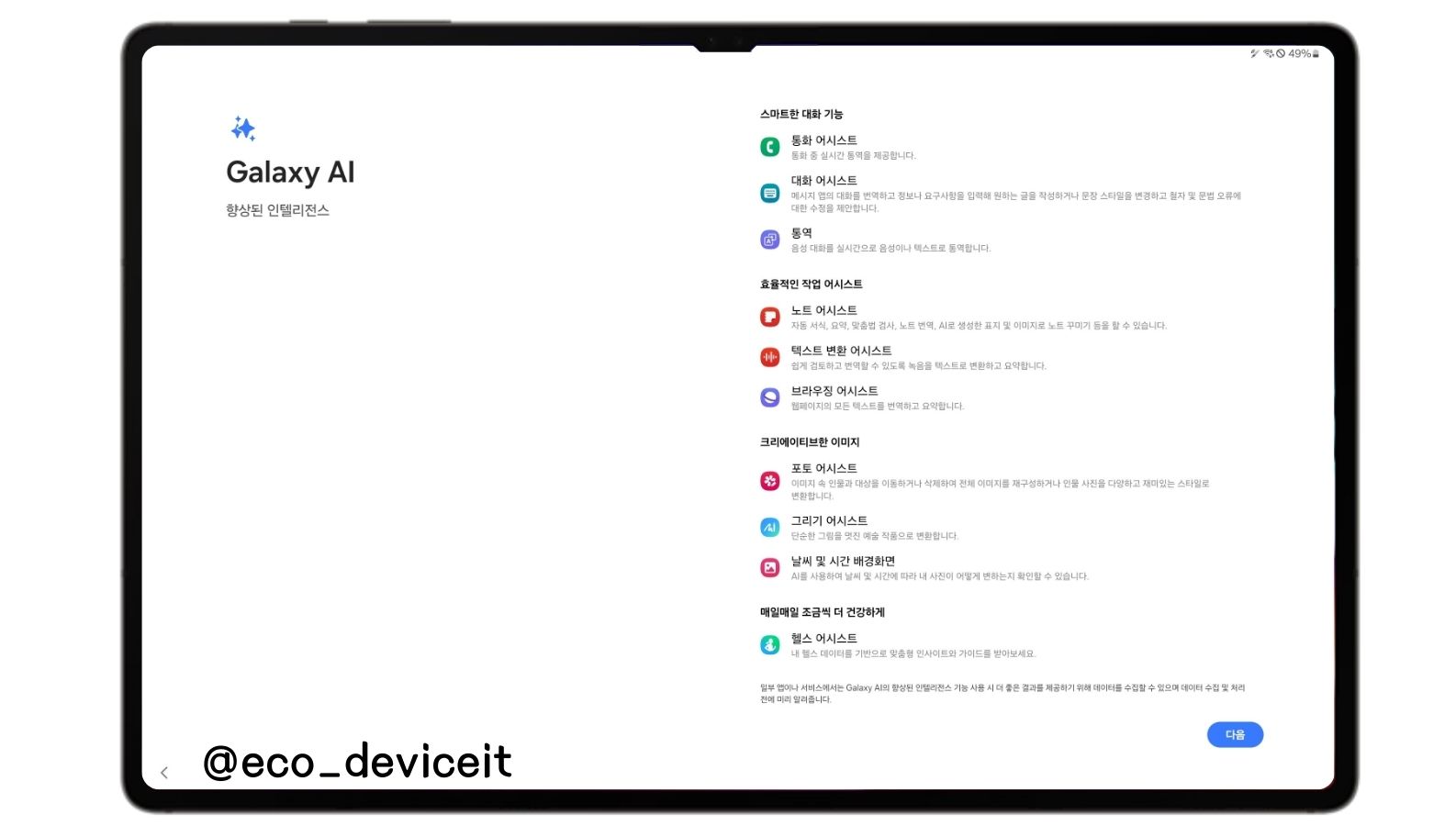 갤럭시 탭 S10 울트라는 갤럭시 태블릿중 최초로 One UI 6.1.1을 탑재하여 갤럭시 AI 기능들이 기본적으로 탑재되어 출시한 갤럭시 탭 입니다. 그래서 대부분의 AI 기능들을 제공하고 있습니다.