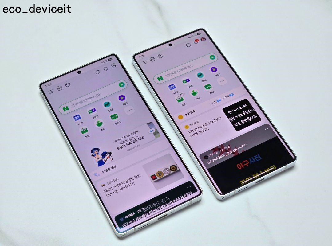 이제 AR 필름을 부착한 갤럭시 S25 울트라와 부착하지 않은 S25 울트라를 비교해보도록 하겠습니다.