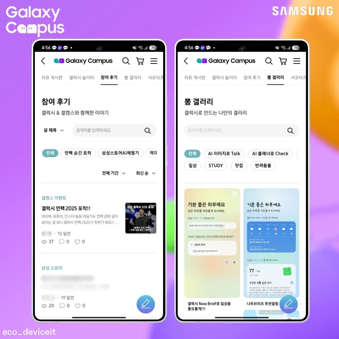 또, 이벤트 참여 후기를 작성할 수 있는 게시판과 갤럭시와 함께한 일상 갤러리를 포스트할 수 있는 뽐 갤러리도 있어 다양한 이벤트들도 게시판에서 진행하니 참고해보셨으면 좋겠습니다.