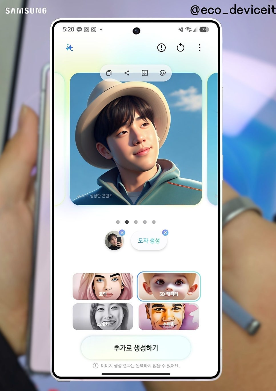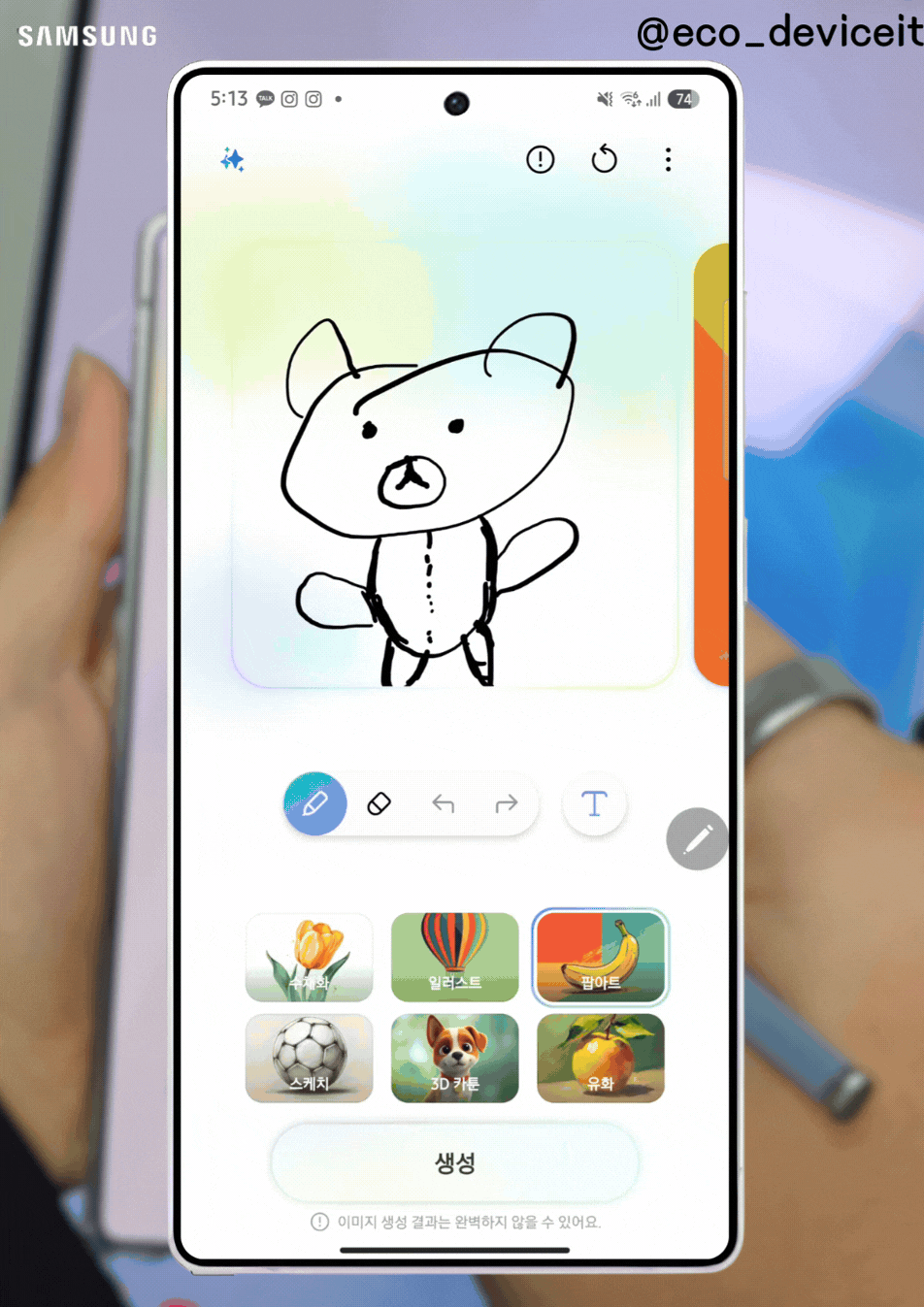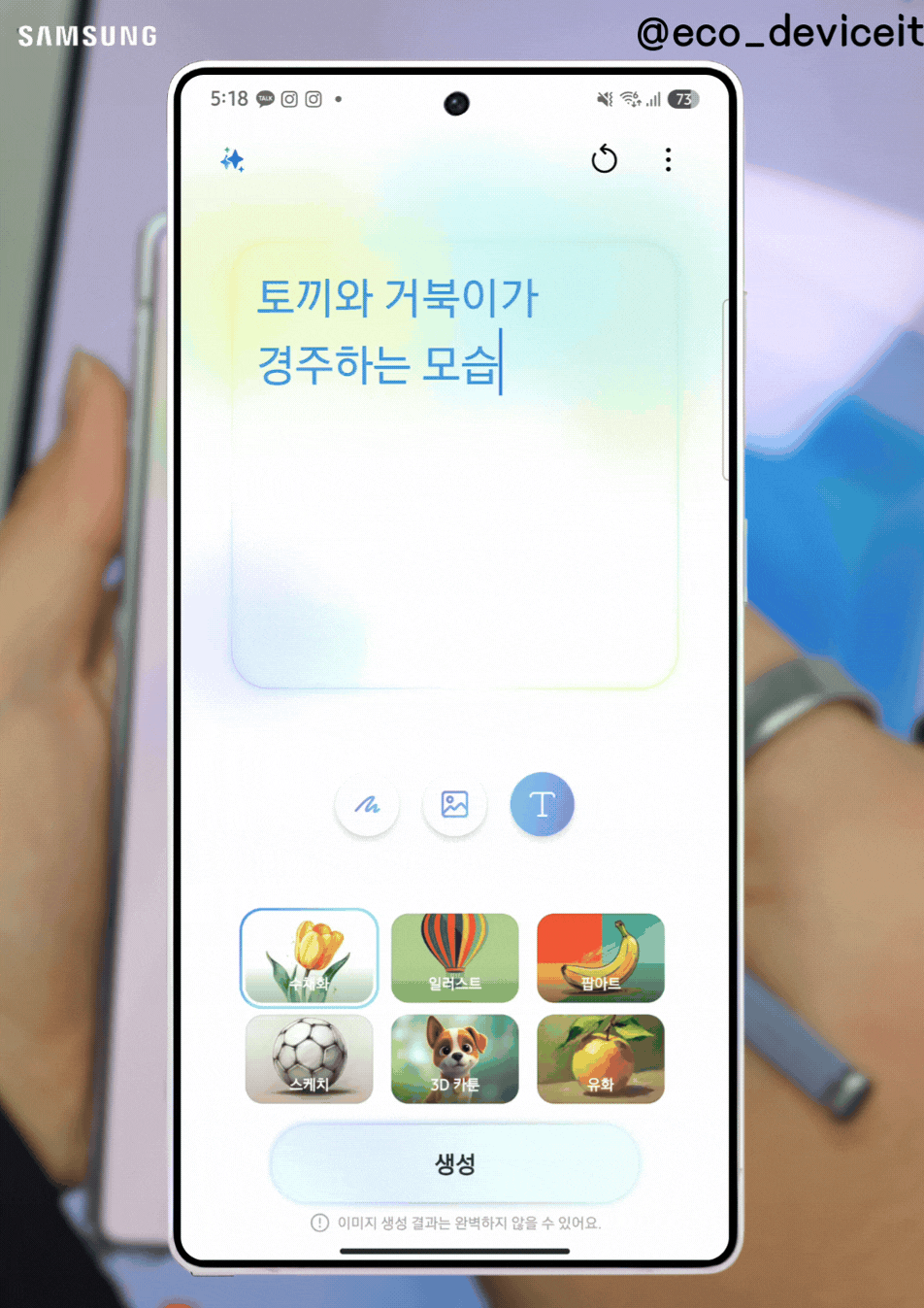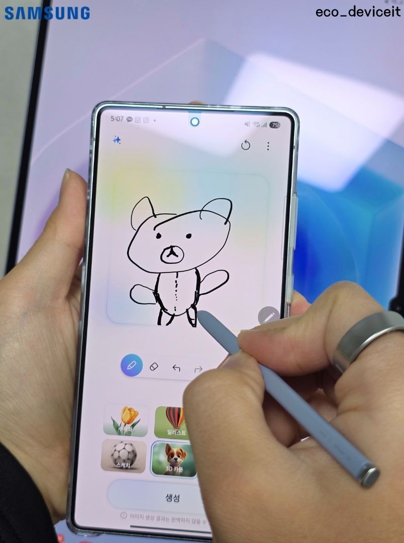 또, 이번 갤럭시 S25 시리즈에 탑재된 그리기 어시스트 기능은 한 층 더 강화된 생성형 AI 경험을 제공합니다. 이젠 텍스트 입력 그리고 첨부한 이미지 기반한 이미지를 제공합니다.