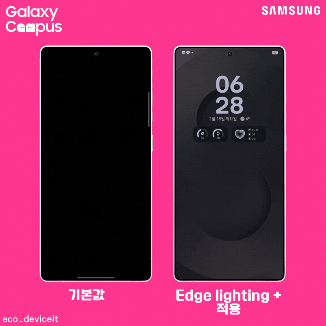 첫 번째로, 알림 스타일을 자유롭게 커스텀 할 수 있는 엣지 라이팅+ 입니다. 엣지 라이팅+로 더욱 세부적으로 알림 스타이일을 커스텀 할 수 있는데요!