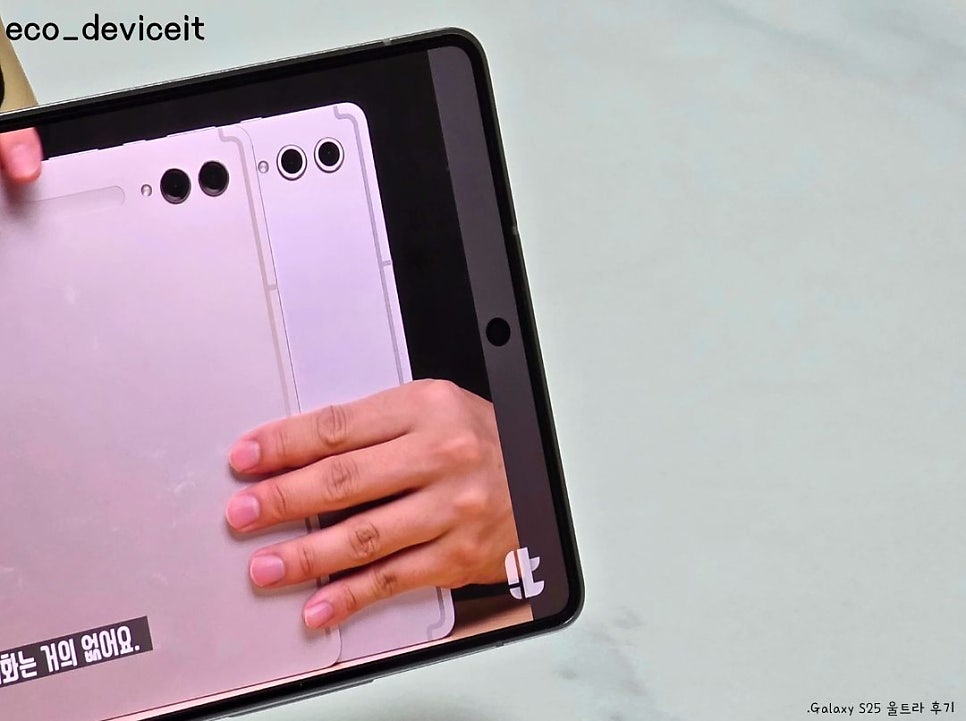 이건 개인적인 의견이지만.. S25 울트라는 컨텐츠를 감상할 때,19.5:9 비율의 특이한 비율로 16:9 비율의 컨텐츠 시청까진 괜찮았는데.. 2:1 비율의 컨텐츠를 감상했을 때, 펀치홀과 컨텐츠 사이의 약간의 틈이 생겨 깔끔하지 못한 아쉬움은 있었습니다.