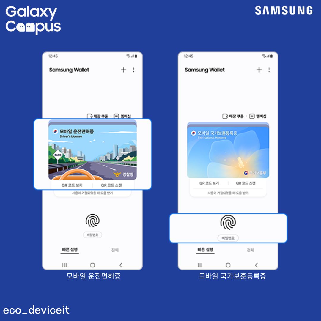 위와 같이 삼성월렛은 모바일 운전면허증 또는 모바일 국가보훈등록증을 쉽게 등록하여 본인인증을 보다 편하게 할 수 있다는 편리한 장점이 있습니다.