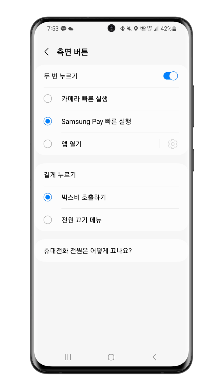 두 번 누르기 설정에서 Samsung Pay 빠른 실행으로 변경하기!