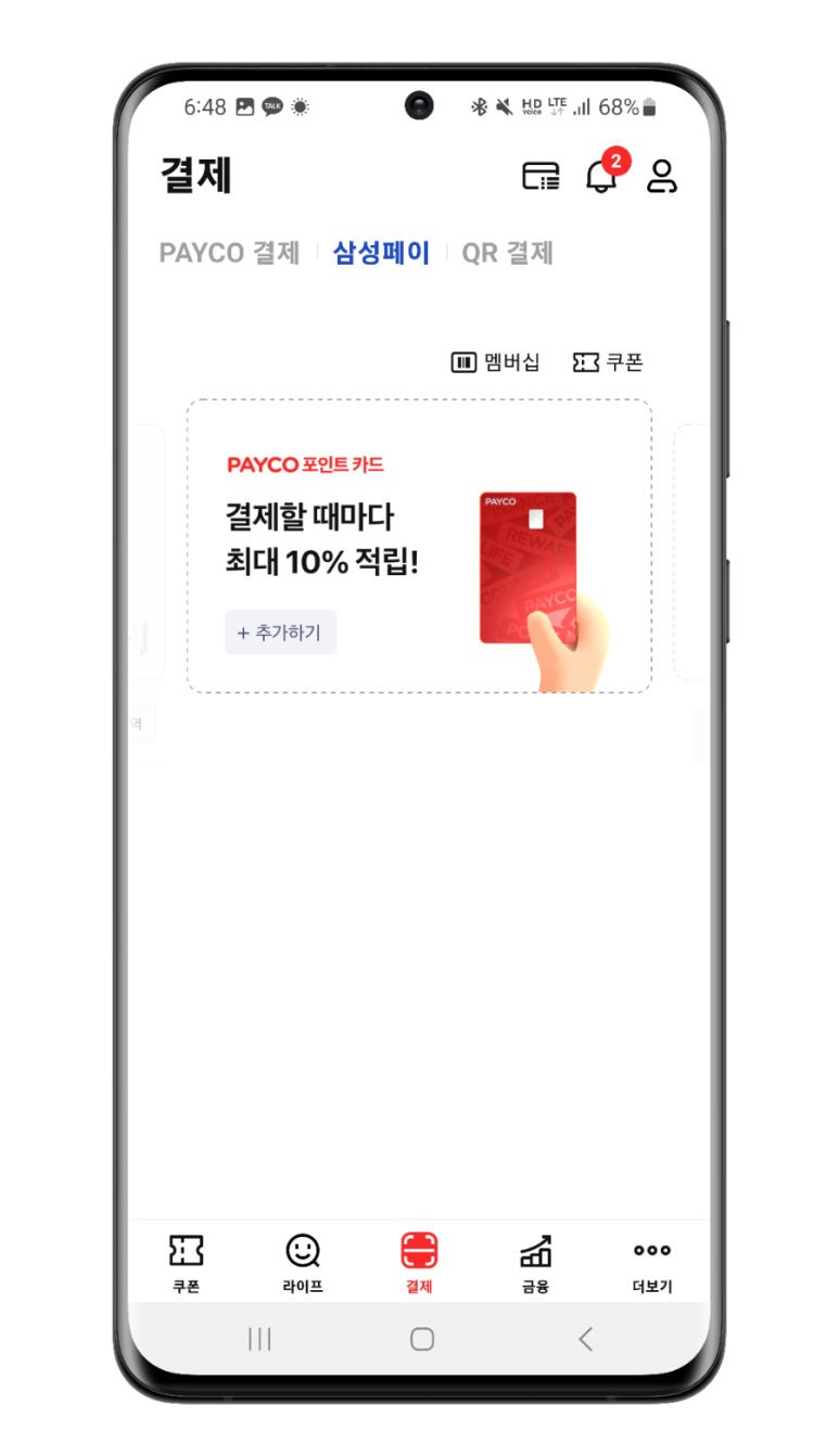 만약 내가 사용하고 있는 멤버십 카드가 있다면 멤버십 카드도 따로 등록해서