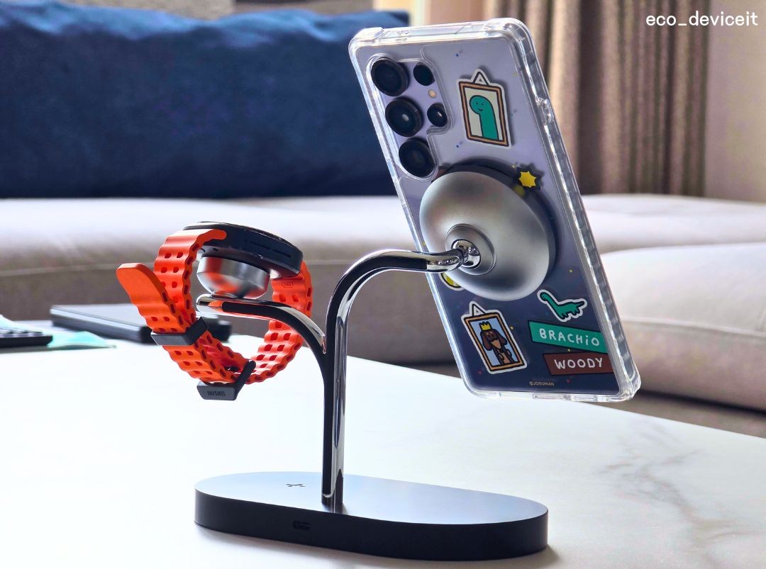이 제품의 가장 큰 장점은 스마트폰, 워치 그리고 웨어러블 제품들을 동시에 3대까지 충전할 수 있다는 장점을 가지고 있습니다.