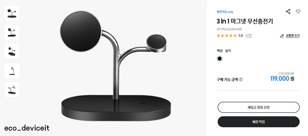 개인적으로는 3 in 1 제품이지만 위의 사진이 정말 완전체가 아닐까 싶습니다. 이젠 스마트폰, 워치, 버즈 그리고 링까지 있다보니.. 하단에 무선 충전 부분을 한 쪽을 더 추가하여 4 in 1이었으면 하는 바램도 있고요.