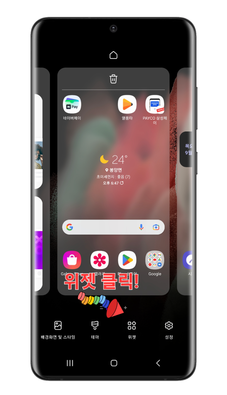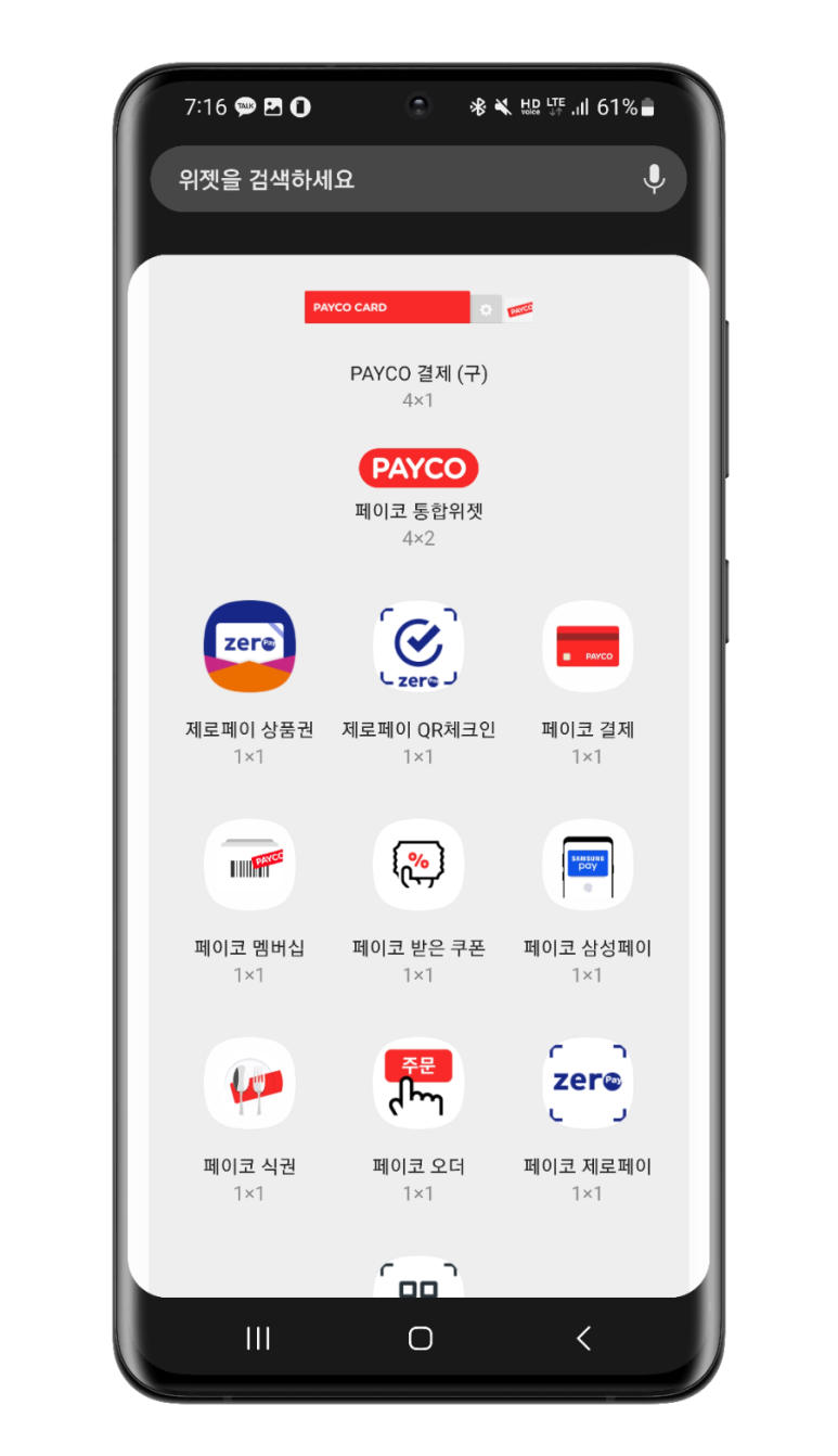위젯 클립해서 페이코 삼성페이 드래그앤 드롭하면 바로 클릭해서 페이코 삼성페이 진입이 가능합니다.
