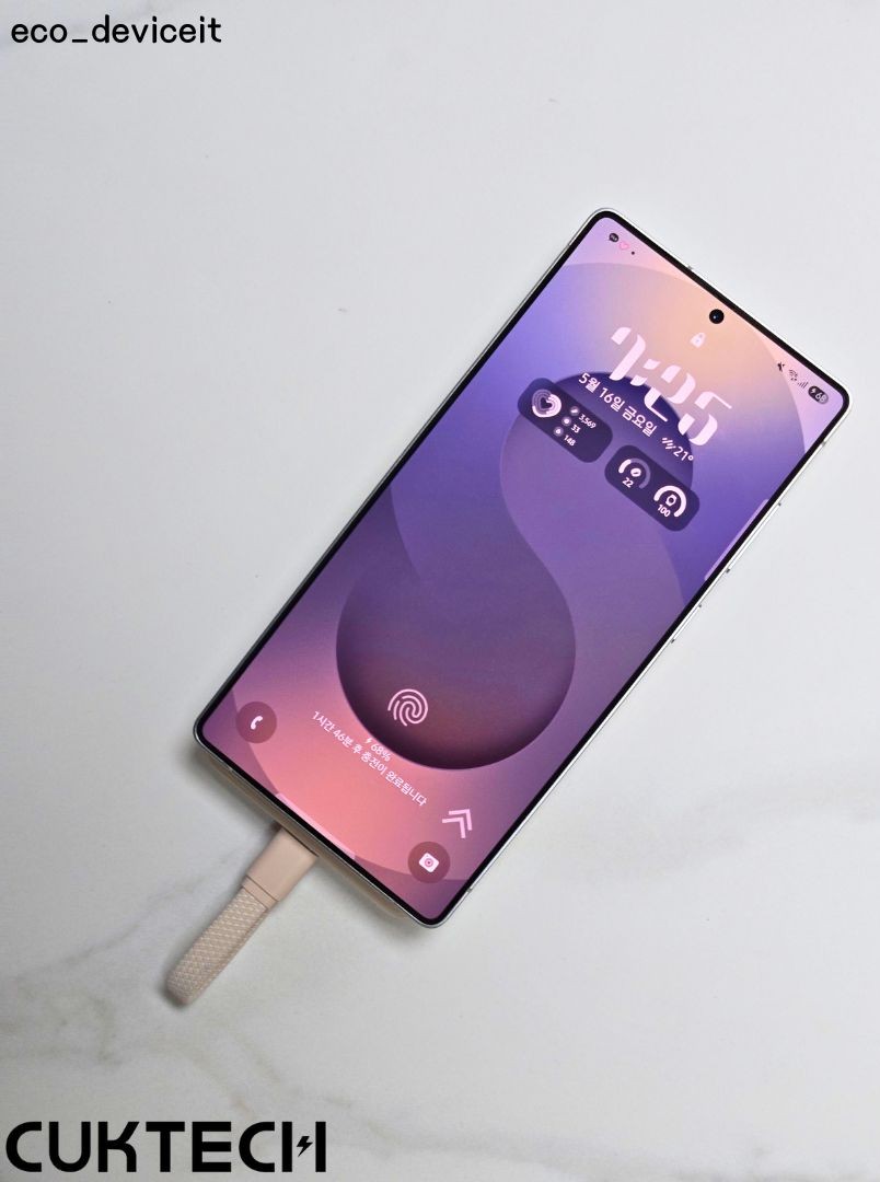 이런식으로 유선으로 충전을 하실 수 있습니다. 갤럭시 S25 울트라 기준, 15W 속도로 출력하여 속도는 아쉬웠습니다.