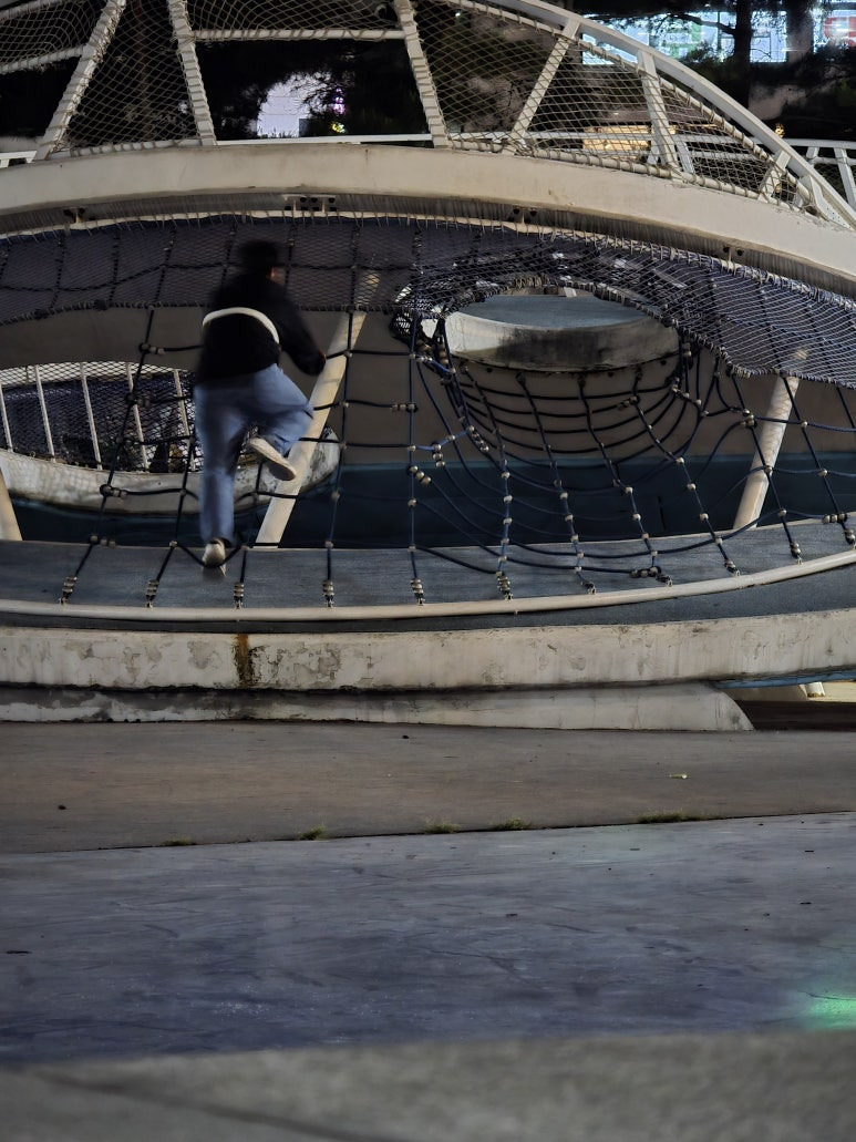 놀이터에 밤산책 온김에 갤럭시 S25 울트라의 5배 망원 카메라로 촬영해봤습니다. 촬영할 땐, 노이즈도 보이고 정말 어두웠는데.. 촬영 후엔, 정말 선명하게 잘 나왔습니다. 다리가 좀 크게 나왔네욬ㅋㅋㅋ