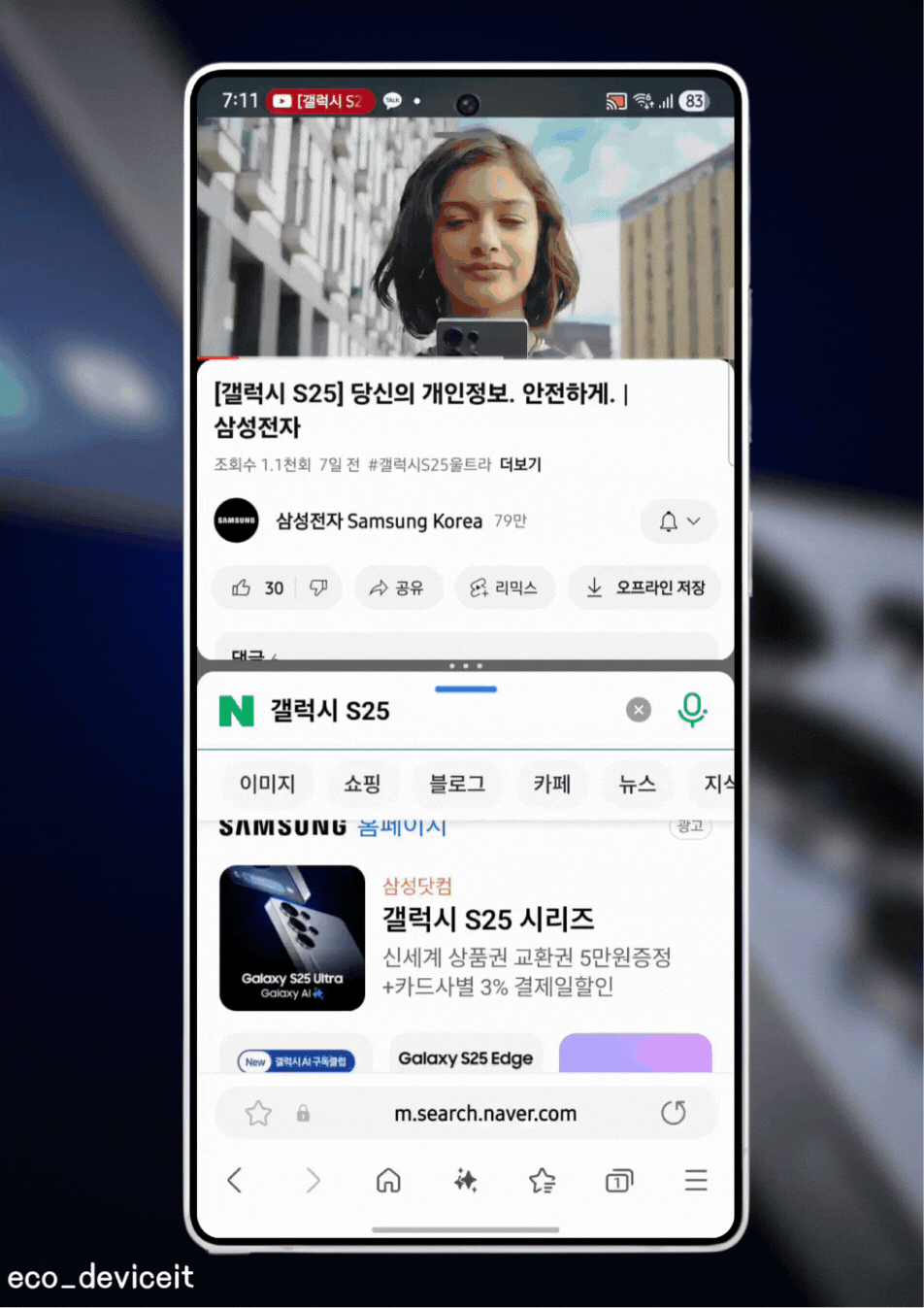 안드로이드는 더욱 큰 화면에서 멀티테스킹을 할 수 있다는 것이 가장 큰 장점입니다. 그래서 이번 One UI 8.0에서 멀티테스킹 기능이 한 층 더 강화되었습니다.