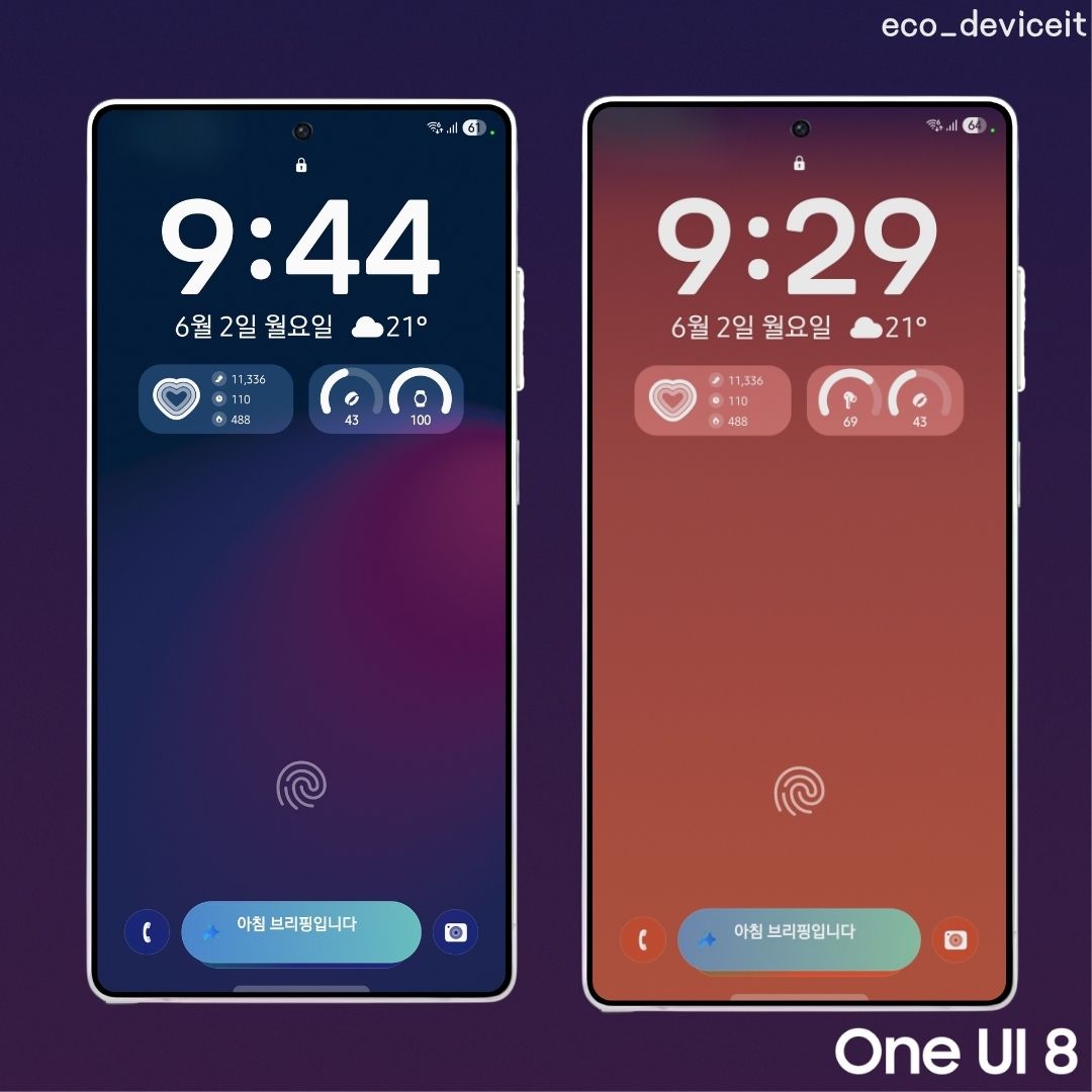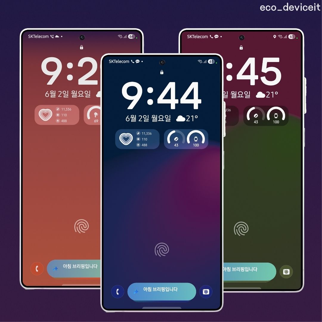 위의 GIF와 같이 시간 대에 따라 색이 감성적으로 변하는 기능이 새롭게 이번 One UI 8.0에서 추가되었습니다. 기본적으로 4가지 스타일의 다이내믹 배경화면을 제공합니다.