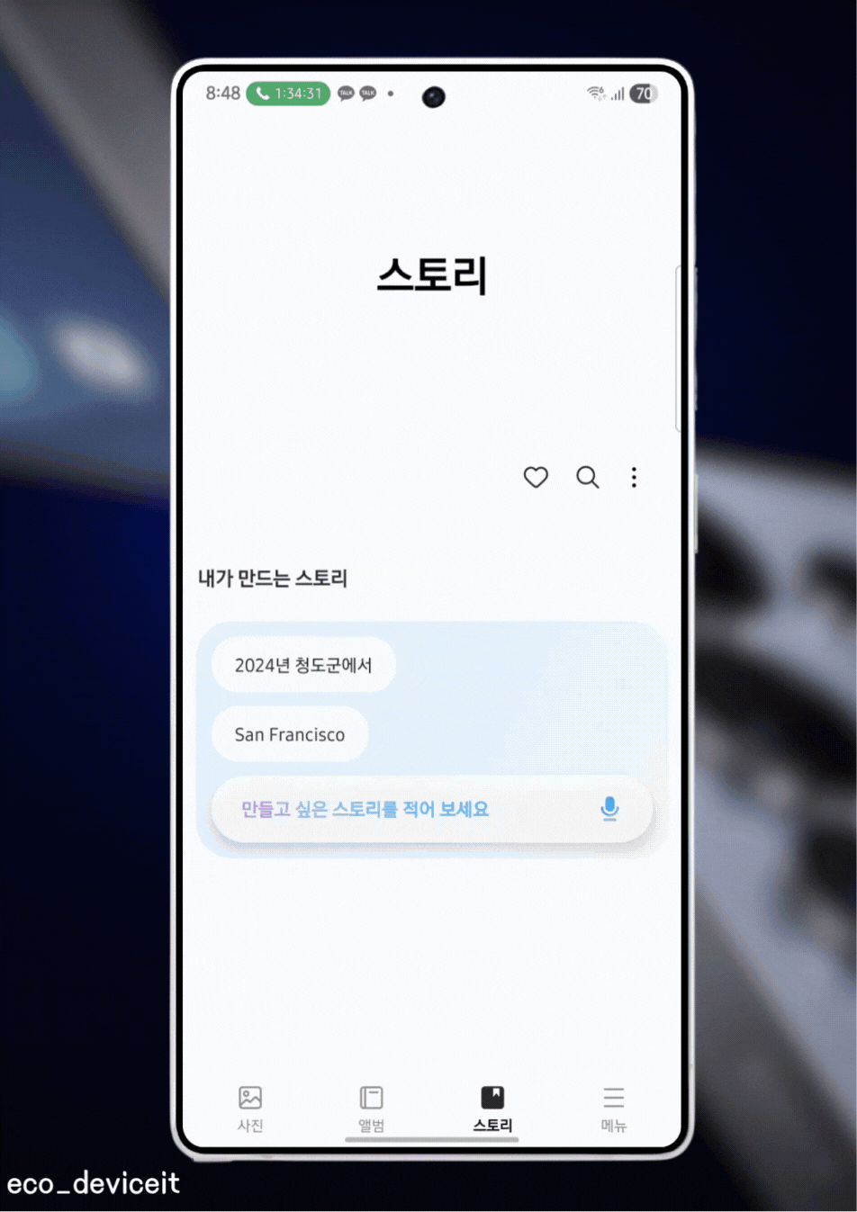 갤러리에서 스토리 기능은 기존까지 있었습니다. 이번 One UI 8 에서 스토리는 갤럭시 AI와 함께 스토리를 제작할 수 있습니다.