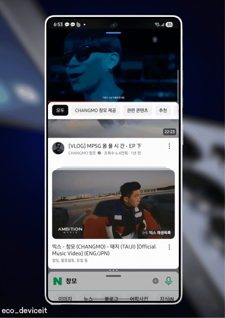 또한, 나머지 15% 화면으로 전환시 서로 차지하는 면적이 바뀌면서 원활하게 멀티테스킹을 할 수 있습니다. 또한, 미디어가 추가되어 있다면 전환시 자동으로 잠시 멈춰주더라고요!!