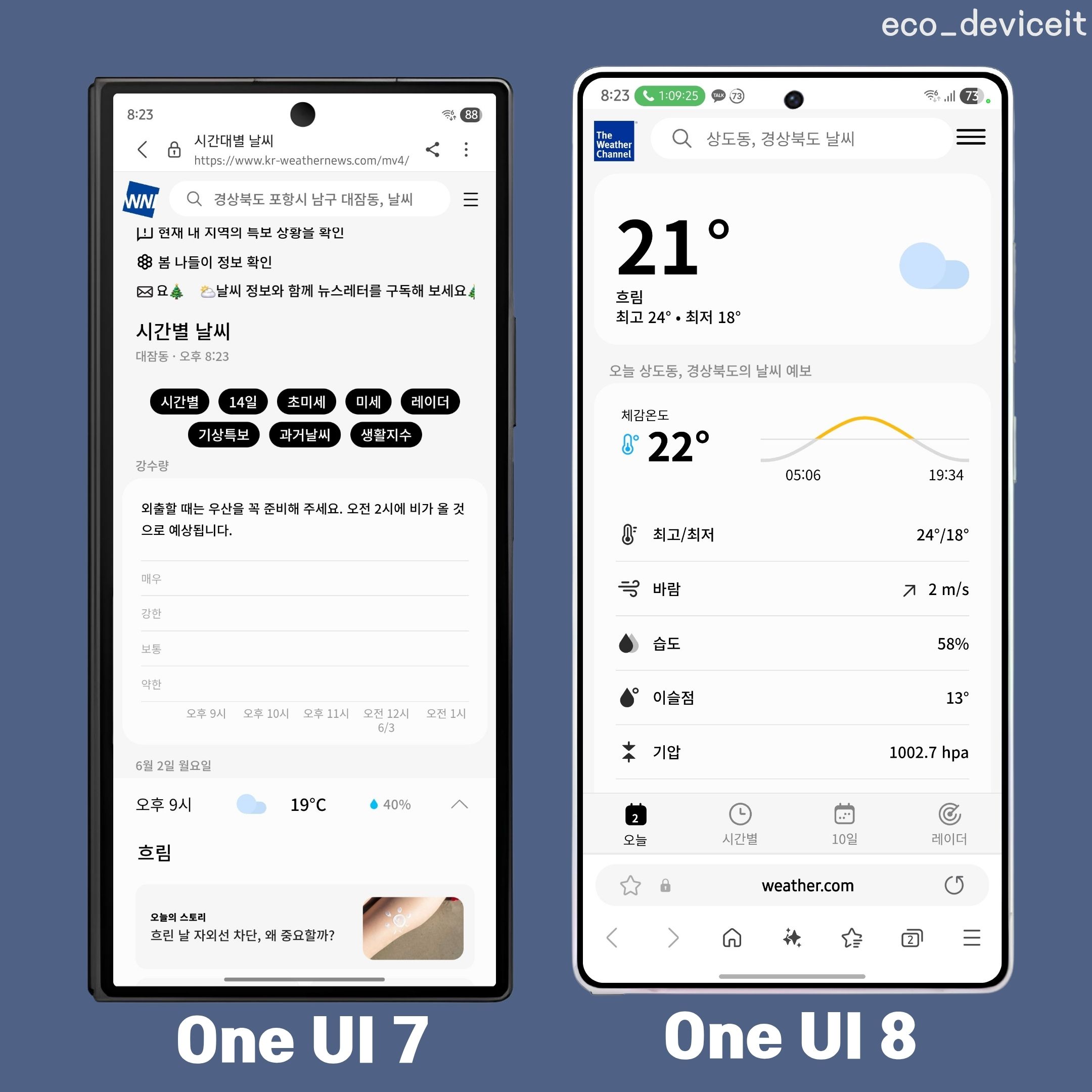 또한, One UI 8 날씨 앱의 데이터 제공사가 The Weather Channel로 변경되어 등록된 일부 지역명이 변경될 수 있습니다.
