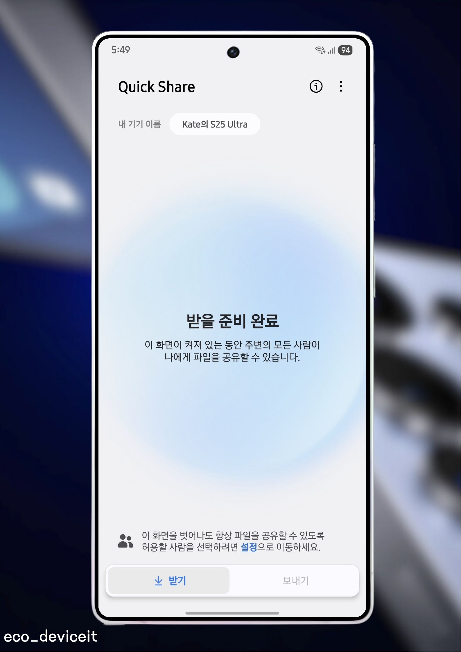 One UI 8.0 퀵쉐어의 경우, 하단에 받기와 보내기 탭으로 나뉘어 그 어느 때 보다 파일을 손쉽게 받을 수 있게 업데이트 되었습니다. 받는 화면도 이전에 비해 훨씬 세련된 느낌이네요!!