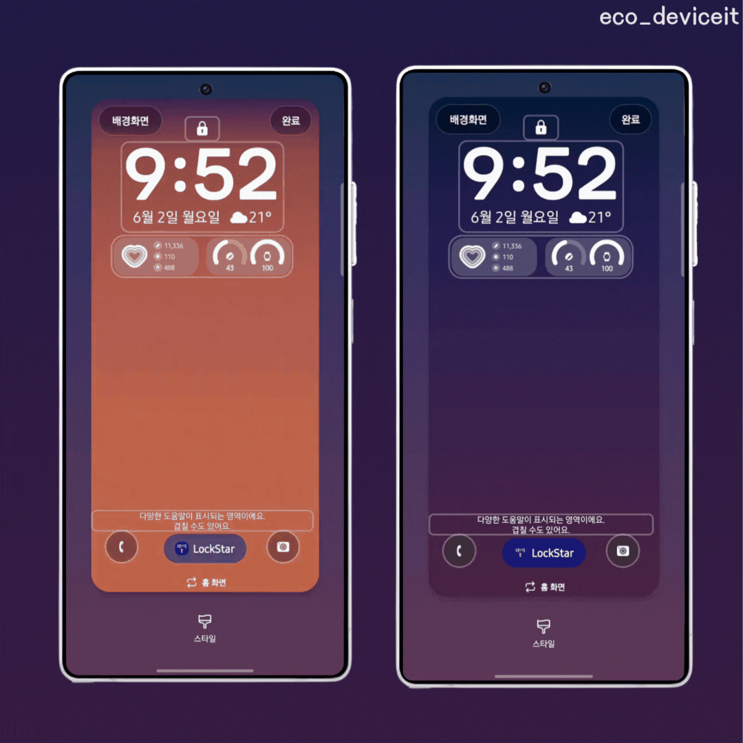 위의 GIF와 같이 시간 대에 따라 색이 감성적으로 변하는 기능이 새롭게 이번 One UI 8.0에서 추가되었습니다. 기본적으로 4가지 스타일의 다이내믹 배경화면을 제공합니다.