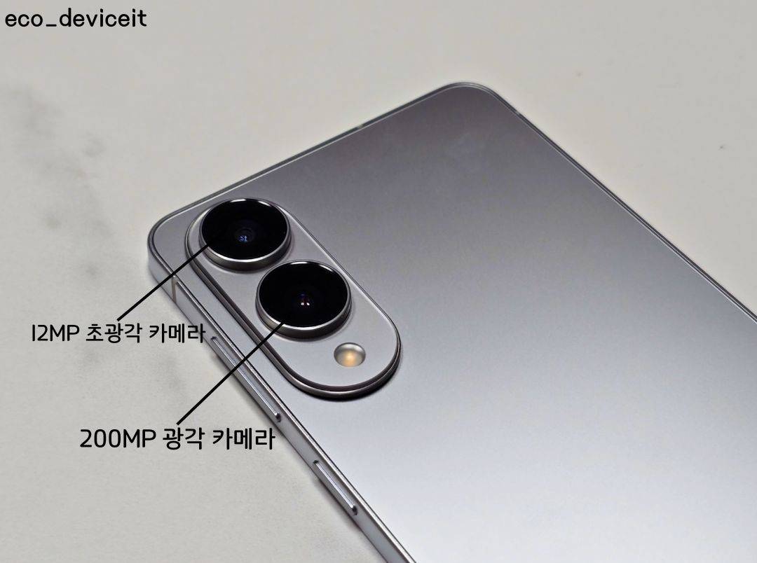 카메라에서 메인 광각 카메라는 200MP 고화소로 갤럭시 S25 울트라 급의 카메라 경험을 제공하고, 12MP 초광각의 경우에도 S25 울트라처럼 AF(Auto Foucus)가 탑재되어 근접 촬영 기능이 추가되었습니다.