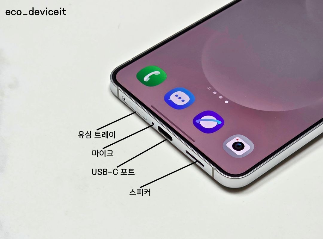 다른 갤럭시 S25 시리즈는 USB-C 포트가 중앙 정렬로 깔끔하게 맞춰져 있는 반면, 갤럭시 S25 엣지는 슬림화에 집중해서 그런지.. USB-C 포트가 중앙 정렬이 아닌 하단으로 좀 더 쏠려 있어 이러한 디테일 부분에서 아쉽긴했습니다.