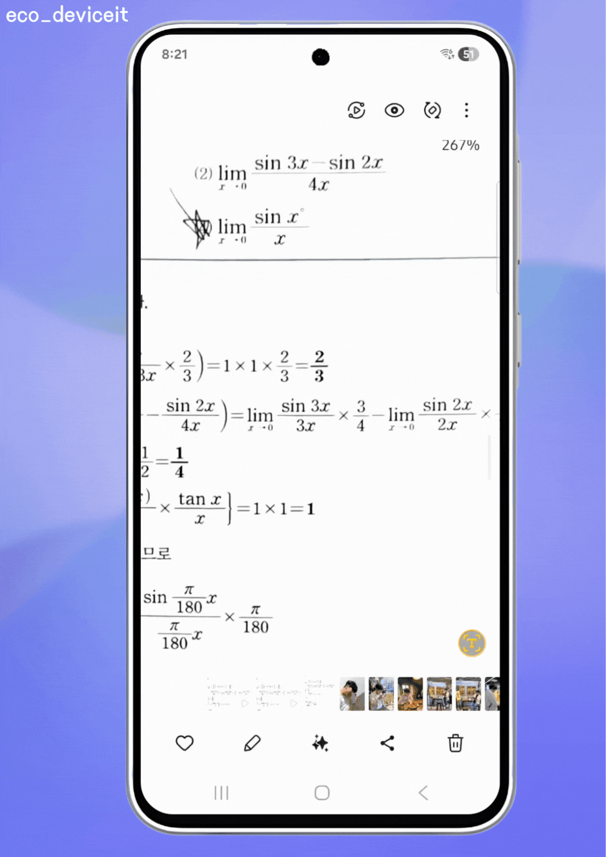 화면에 있는 수학 문제도 원만 그리면 풀이 과정 및 해설 그리고 다양한 경우의 풀이 과정들까지 추천해주는 기능도 있어요!! 학생분들에겐 아주 꿀팁이죠!!