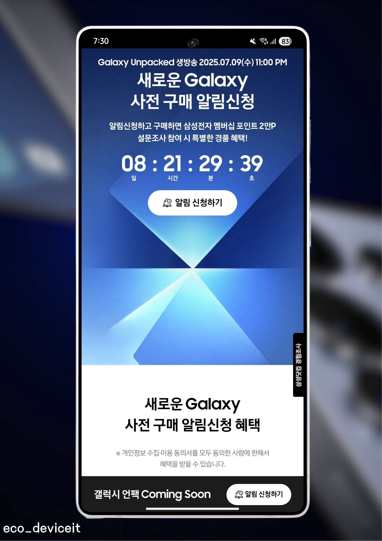 If you want to buy a new Galaxy before anyone else, if you apply for a pre-purchase notification at Samsung dotcom or Galaxy campus like me, don't miss out because you can quickly meet the new Galaxy and various benefits will be prepared!!