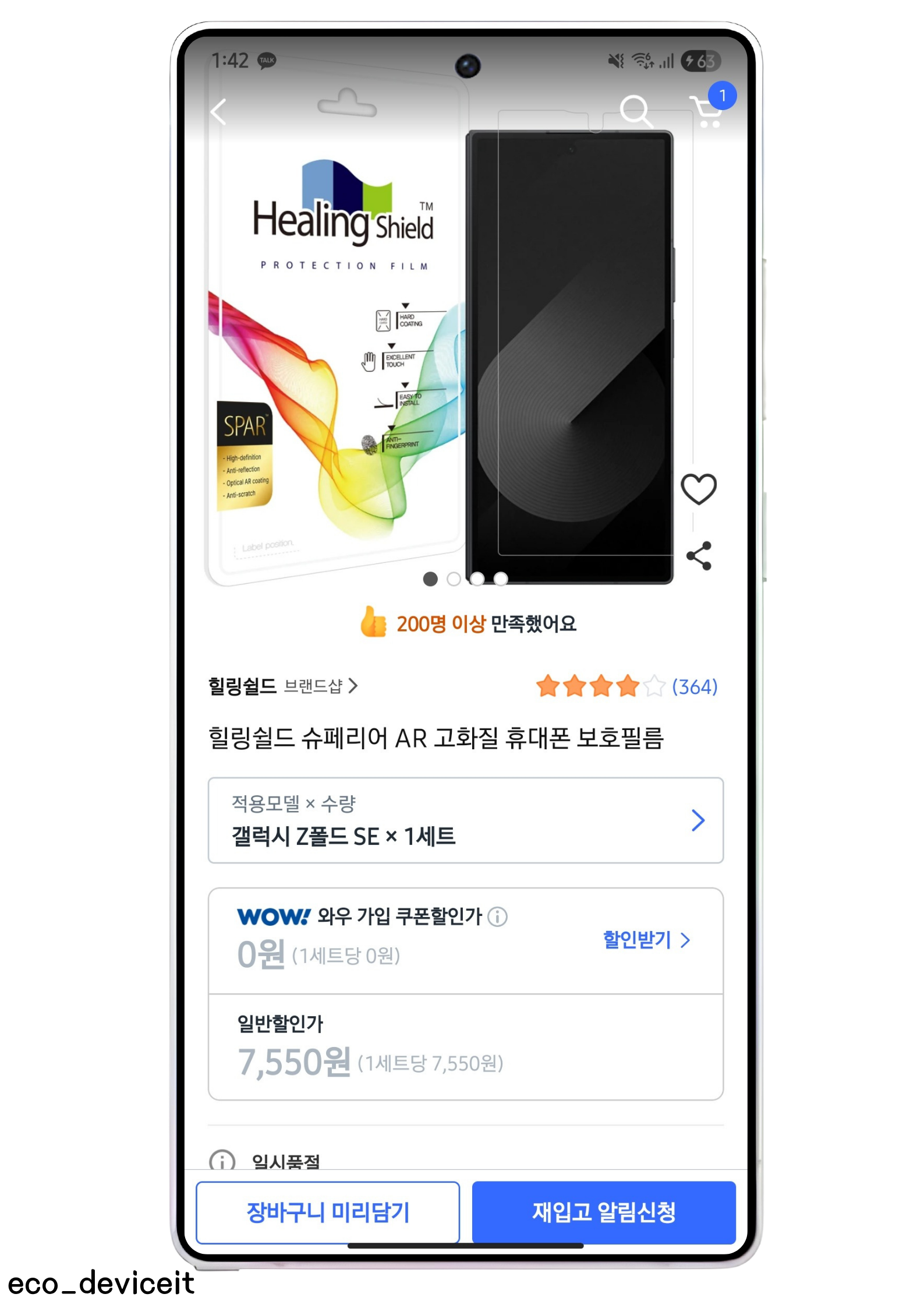 갤럭시 Z 폴드SE에는 기본적으로 외부 화면에는 보호필름을 부착해주지도 않고, 외부 화면에 AR 특수 코팅이 처리되지 않아, 갤럭시 울트라를 사용했던 유저로서 AR 필름으로 고화질을 다시 경험해보려고 구매했습니다!!