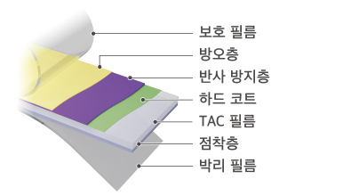 AR 필름은 빛 반사를 줄이기 위해 특수 나노층 코팅을 첨가하여 그것을 최대한 얇게 입히는 방식입니다.